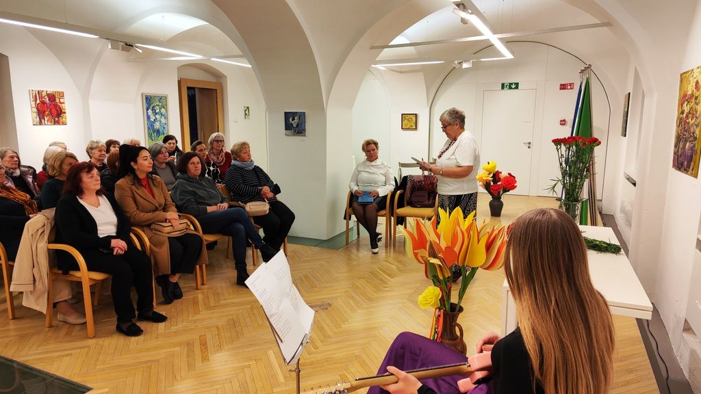 Odprtje razstave je obogatila recitacija pesmi Neže Mauer – Nisem še ciganka, ki jo je izvedla ga. Milena Lubaj, za glasbeno popestritev pa je poskrbela devetošolka OŠ Kidričevo, Lili Trop. Vse ustvarjalke in vsi obiskovalci razstave smo prejeli rdeče nageljne, ki jih je donirala ga. Žunkovič.