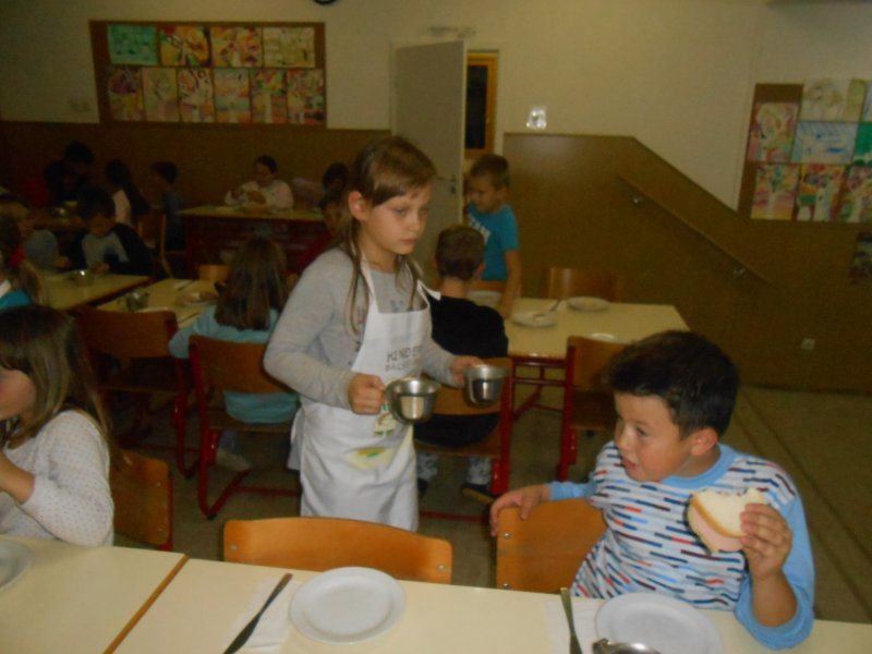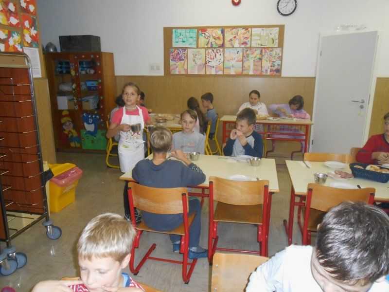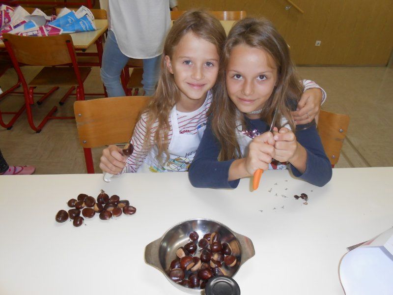 Nekateri smo zjutraj prišli ob pol osmih, drugi pa so prišli kasneje, ker smo imeli interesno dejavnost Masteršef. Tisti, ki so hodili na masteršefa so rezali kostanje in delali papirne tulce za pečene kostanje. Potem so še nekateri rezali kostanje, drugi pa pisali bonton v gledališču. Šli smo na malico. Po malici smo se šli obut in morali smo počakati učiteljico. Šli smo na avtobus in se odpeljali do Kidričevega. Tam smo pobrali Kidričane in se odpeljali v Maribor. Na avtobusni postaji nas je odložil avtobus. Peš smo odšli do gledališča. V gledališču smo si ogledali predstavo Gledališče od Ž do A. Po predstavi smo odšli v šolo. Tam smo imeli kosilo. Po kosilu smo se igrali ali bili na računalnikih. Nekateri so imeli pevske vaje in gimnastiko. Po pevskih smo si pripravili ležišča in se igrali različne igre. Tisti, ki so prišli iz gimnastike so si tudi pripravili ležišča. Šli smo v avlo in nam je učiteljica povedala, da se moramo preizkusiti v vseh treh igrah, katere so pripravile učiteljice na šolskem dvorišču. Šli smo ven. Zunaj smo se igrali, preizkušali igre in jedli kostanje vse to smo počeli do večera.
