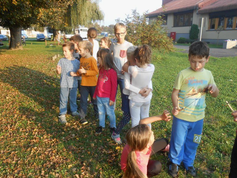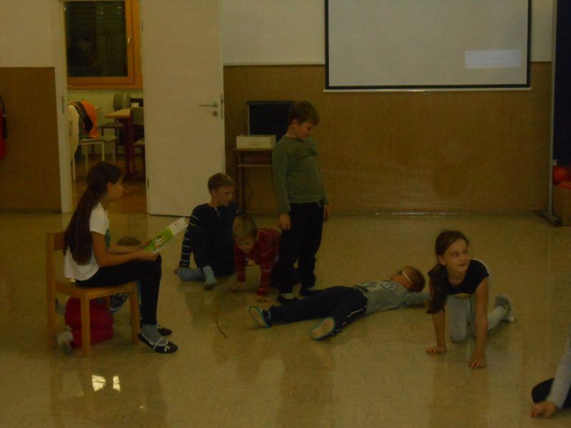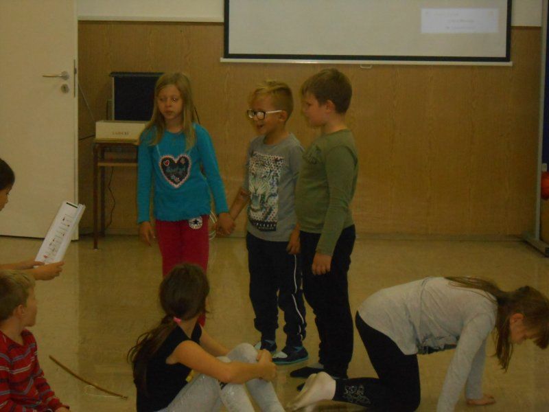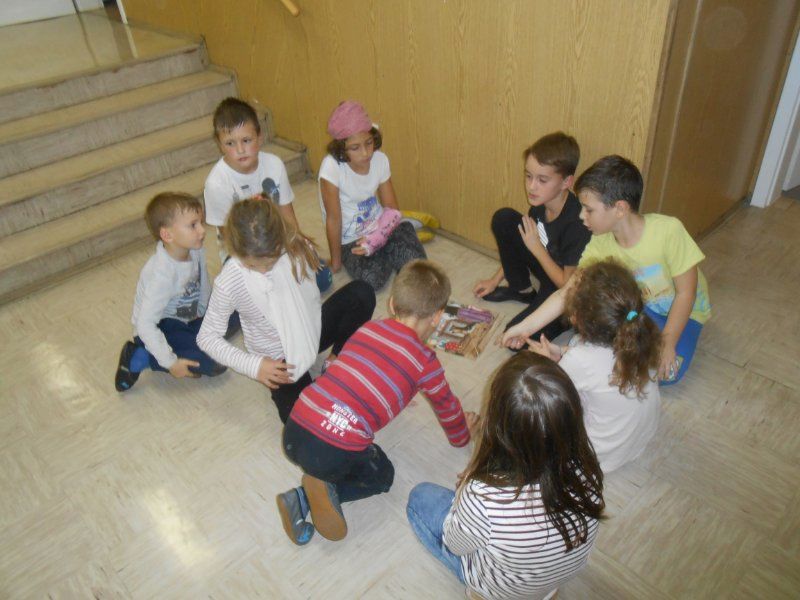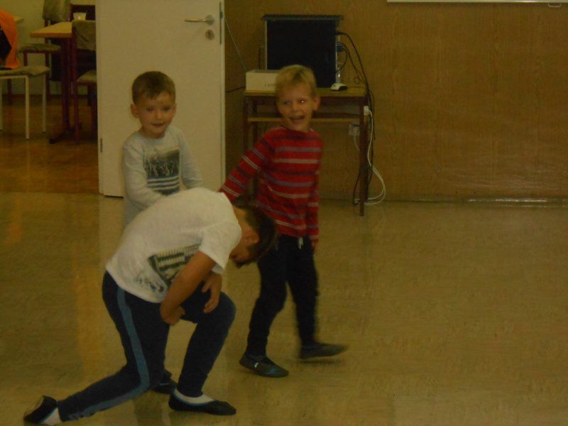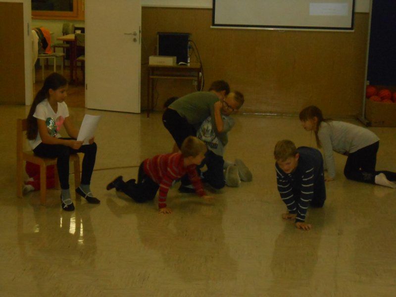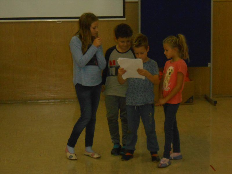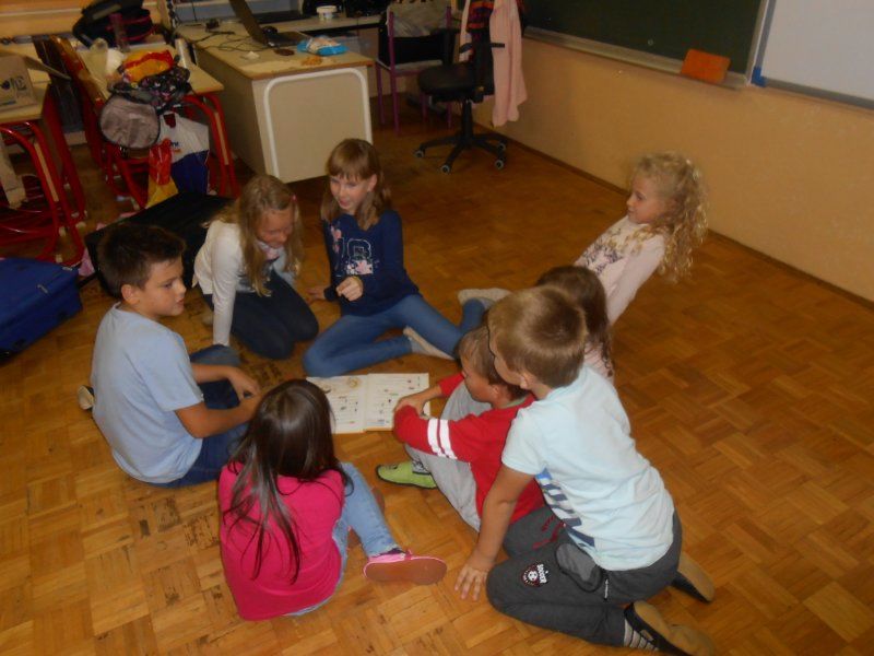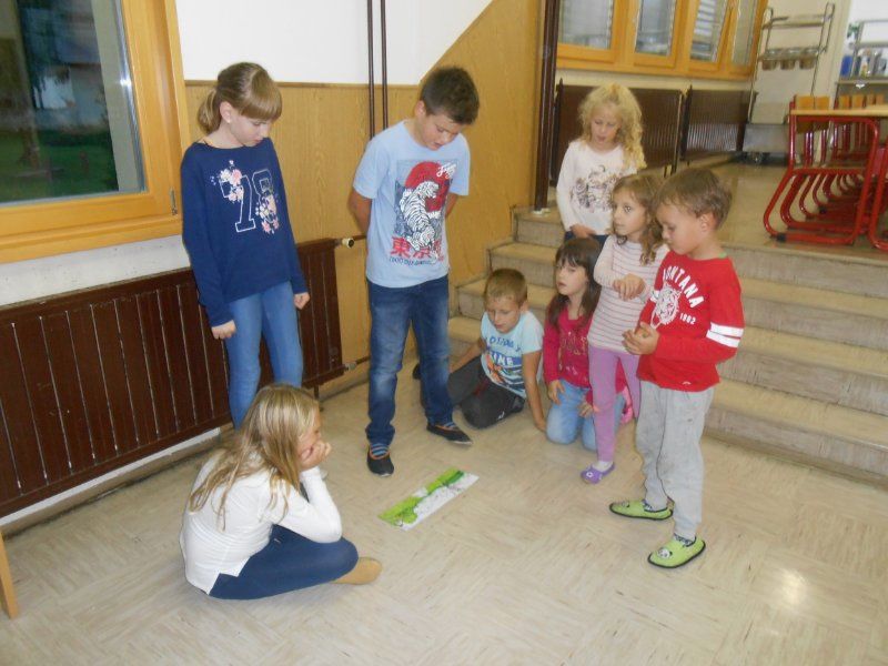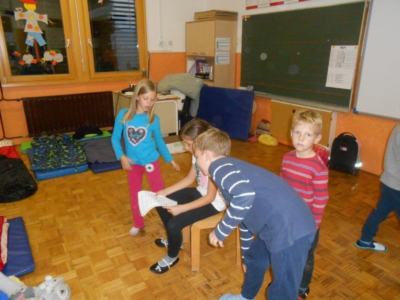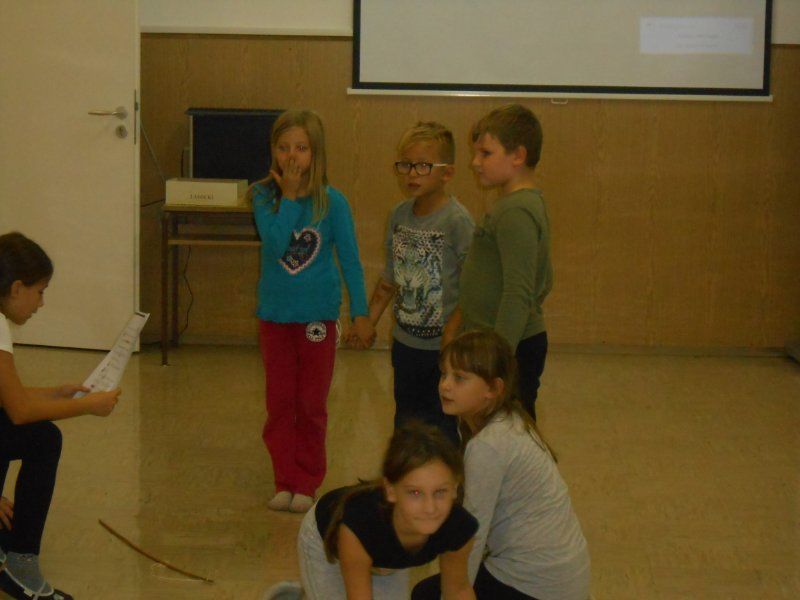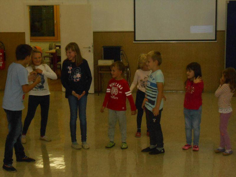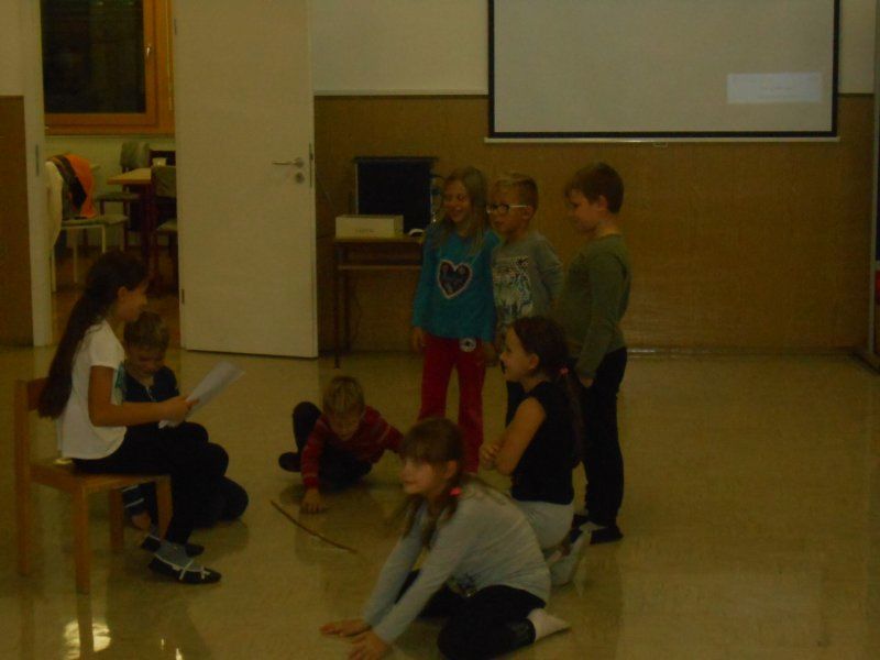 V četrtek zjutraj, 11. 10. 2019, smo se vsi skupaj zbrali v šoli. Šli smo v razred in narisali smo gledališče. Ko smo narisali, smo šli v avlo rezat kostanje. Potem je bil že čas za malico, zato smo odšli na malico. Po malici smo lahko nadaljevali z rezanjem kostanjev. Šli smo si obuvat čevlje. Ko smo se obuli, smo šli na avtobus. Avtobus nas je pripeljal do Maribora. Tam smo se sprehodili do gledališča. Videli smo kužno znamenje. Ko smo prispeli v gledališče, smo se posedli in gledališka predstava se je začela. Gledališka predstava se je imenovala Gledališče od Ž do A. Prispeli smo nazaj v šolo in imeli kosilo. Po kosilu smo lahko šli na računalnike. Prišel je čas, ko so nekateri imeli gimnastiko drugi pa otroški pevski zbor. Ko so se dejavnosti končale, smo si pripravili ležišča. Zbrali smo se v avli. Tam smo se dogovorili, kaj bomo počeli. Nato smo odšli ven. Tam smo morali opraviti tri igre. Ko smo igre končali, smo se lahko igrali po svoje. Jedli smo kostanje, klobase in kruh. Potem smo odšli noter. Tam smo izžrebali barvne listke. Razdelili smo se v skupine. V skupini smo sestavljali slikanico. Ko smo sestavili, smo šli vsak v svoj razred. V razredu smo si razdelili vloge in igrali prizor. Ko smo prišli v avlo, smo odigrali svojo dramsko igro. Zvečer smo se oblekli v pižame in odšli na večerjo. Ko smo se najedli, smo počakali na učiteljice, da so se še one najedle. Potem smo šli v razred. Tam smo si lahko razdelili sladkarije. Učiteljica je prišla v razred in naredila nam je risanko. Še pred tem smo si umili zobe. Bil je že čas za spanje in tako se je dan tudi zaključil.