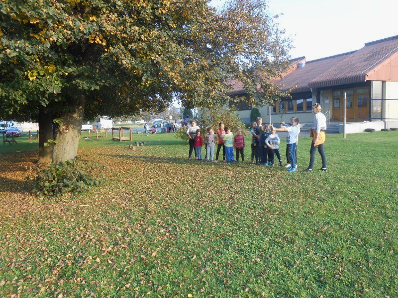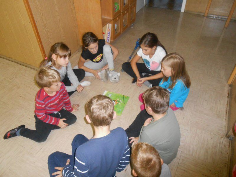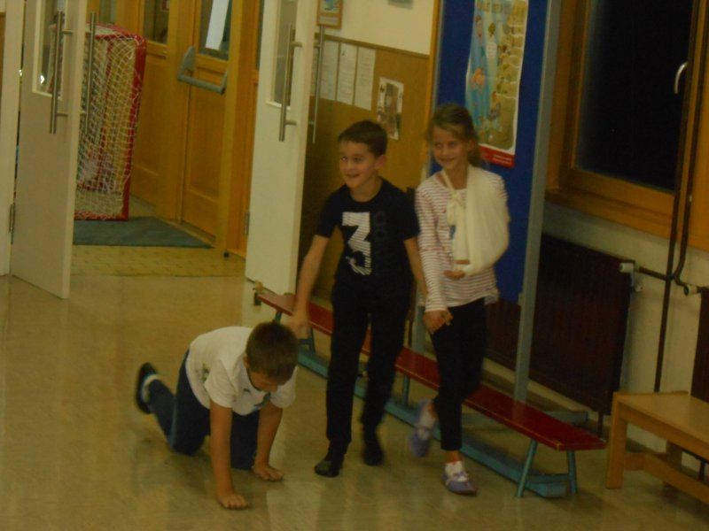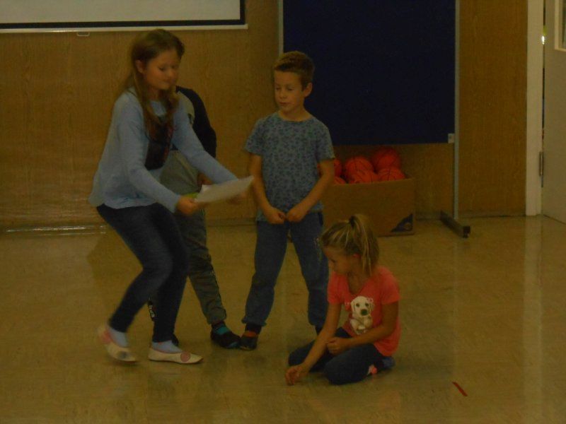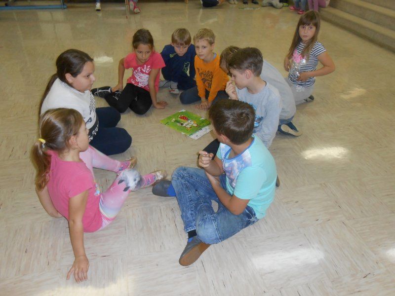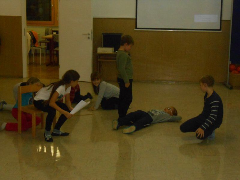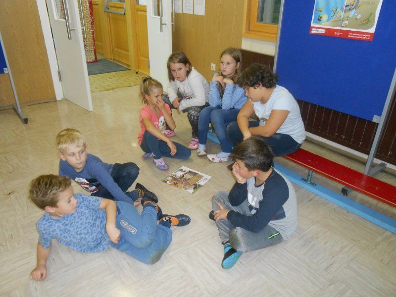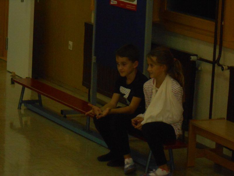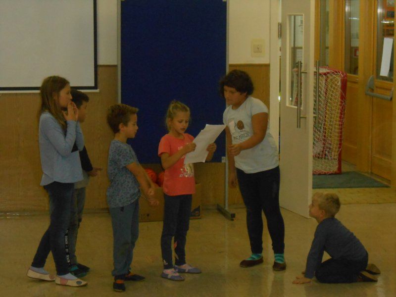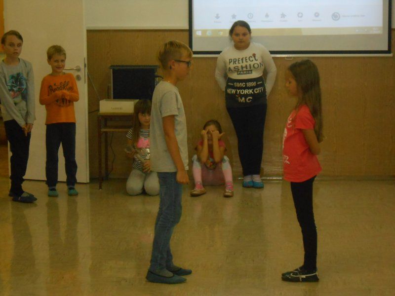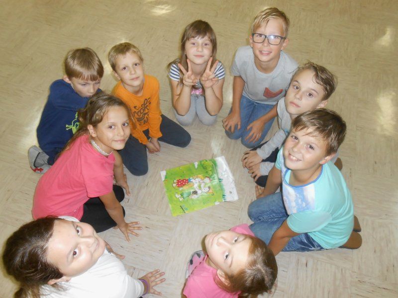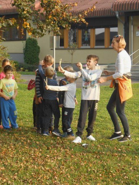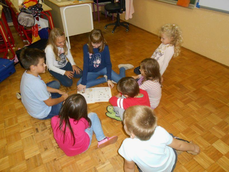 V četrtek zjutraj, 11. 10. 2019, smo se vsi skupaj zbrali v šoli. Šli smo v razred in narisali smo gledališče. Ko smo narisali, smo šli v avlo rezat kostanje. Potem je bil že čas za malico, zato smo odšli na malico. Po malici smo lahko nadaljevali z rezanjem kostanjev. Šli smo si obuvat čevlje. Ko smo se obuli, smo šli na avtobus. Avtobus nas je pripeljal do Maribora. Tam smo se sprehodili do gledališča. Videli smo kužno znamenje. Ko smo prispeli v gledališče, smo se posedli in gledališka predstava se je začela. Gledališka predstava se je imenovala Gledališče od Ž do A. Prispeli smo nazaj v šolo in imeli kosilo. Po kosilu smo lahko šli na računalnike. Prišel je čas, ko so nekateri imeli gimnastiko drugi pa otroški pevski zbor. Ko so se dejavnosti končale, smo si pripravili ležišča. Zbrali smo se v avli. Tam smo se dogovorili, kaj bomo počeli. Nato smo odšli ven. Tam smo morali opraviti tri igre. Ko smo igre končali, smo se lahko igrali po svoje. Jedli smo kostanje, klobase in kruh. Potem smo odšli noter. Tam smo izžrebali barvne listke. Razdelili smo se v skupine. V skupini smo sestavljali slikanico. Ko smo sestavili, smo šli vsak v svoj razred. V razredu smo si razdelili vloge in igrali prizor. Ko smo prišli v avlo, smo odigrali svojo dramsko igro. Zvečer smo se oblekli v pižame in odšli na večerjo. Ko smo se najedli, smo počakali na učiteljice, da so se še one najedle. Potem smo šli v razred. Tam smo si lahko razdelili sladkarije. Učiteljica je prišla v razred in naredila nam je risanko. Še pred tem smo si umili zobe. Bil je že čas za spanje in tako se je dan tudi zaključil.