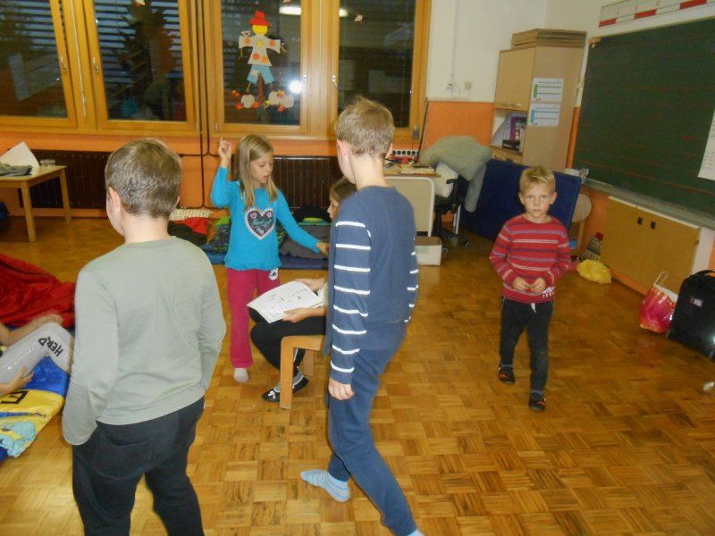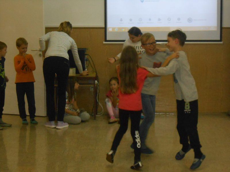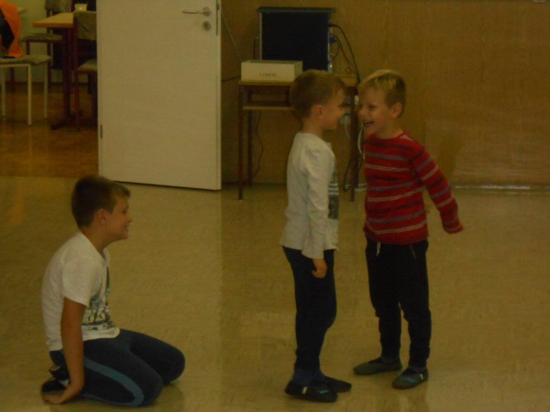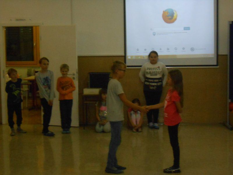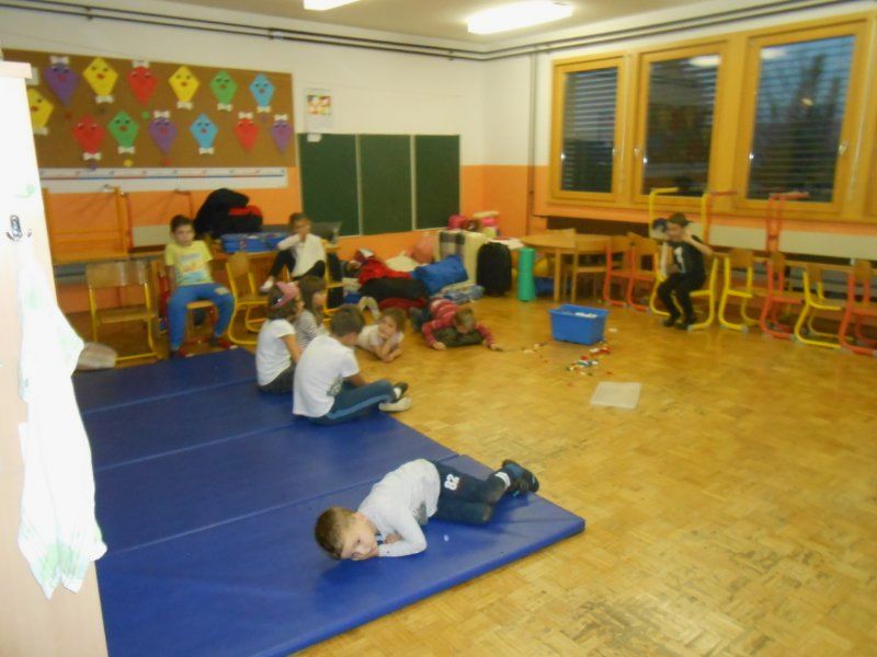 Zjutraj smo normalno prišli v šolo in šli v gledališče. Ogledali smo si predstavo Gledališče od Ž do A. Predstava je bila zelo zanimiva in smešna. Ob dveh smo se vrnili iz gledališča. Ko smo se najedli, smo se šli v razred igrat. Prišli smo v avlo in so nam povedali načrt celega dneva. Ko so nam vse povedali, smo šli ven jest kosanje. Imeli smo tudi tri stare igre metanje podkev, streljanje s fračo in zabijanje žebljev. Ko smo preizkusili vse tri igre, smo se lahko igrali po svoji volji. Ko se je zvečerilo, smo šli noter. Imeli smo Kekčeve igre. Morali smo prikazati z dramatiko svoj del besedila. Ko je bilo konec, smo se šli v razred posladkat in pogledat Bikca Ferdinanda. In nato smo šli spat. Zjutraj smo se zbudili. Imeli smo zajtrk. Bili smo v pižamah do devetih. Pri pouku smo se lahko igrali. Jedli smo sladkarije in gledali filme. V podaljšanem bivanju smo šli ven.
