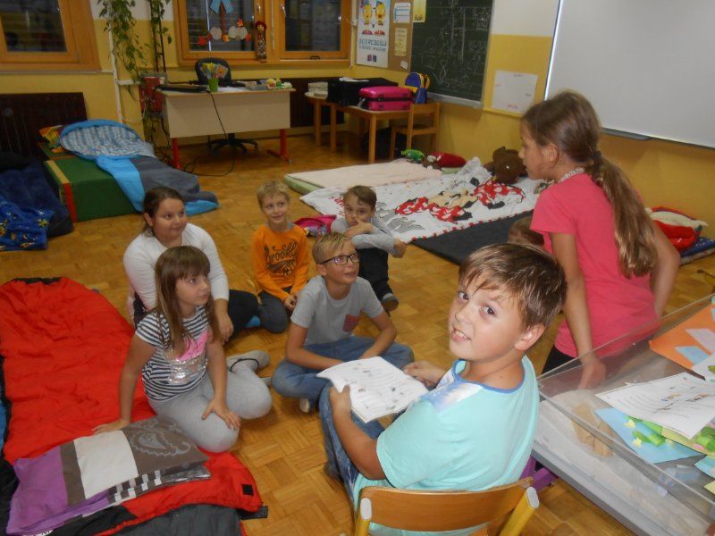 V četrtek, 11. 10. 2019, smo v šolo prišli kakor običajno. Ta dan smo šli v gledališče in si ogledali predstavo Gledališče od Ž do A. Bila mi všeč. Ko smo se vračali, smo že bili lačni. Ko smo se najedli, smo šli v razrede in si pripravili ležišča ter nekateri šli na gimnastiko. Bili smo zelo pridni. Ko smo se umili, smo jedli sladkarije. Nato smo šli ven, kjer smo si pekli kostanje ter klobasice. Potekale so tudi raznorazne igre, kot so metanje podkve, streljanje s fračo in zabijanje žebljev. Zunaj smo bili do šeste ure. Nato smo šli v razred. Nekaj časa smo bili v razredu, potem smo odšli v avlo. Tam smo dobili vsak svoj listek ter se razdelili v skupine po sedem učencev. Morali smo odigrali predstavo Kekca. Nato smo odšli v razrede. Masteršefovci smo pripravili večerjo. Ko so prišli učenci, smo jim postregli z namazi ter s čajem. Potem smo odšli v razrede, nekateri pa so pospravili iz miz. Nato smo se preoblekli, umili zobe ter si ogledali Bikca Ferdinanda. Zaspali smo ob pol enajstih.
