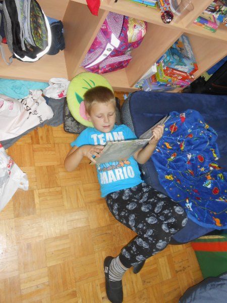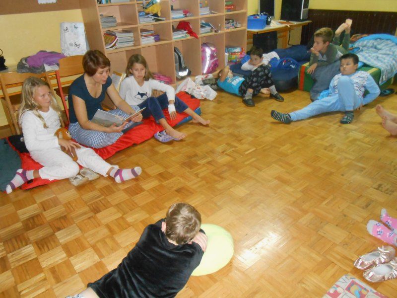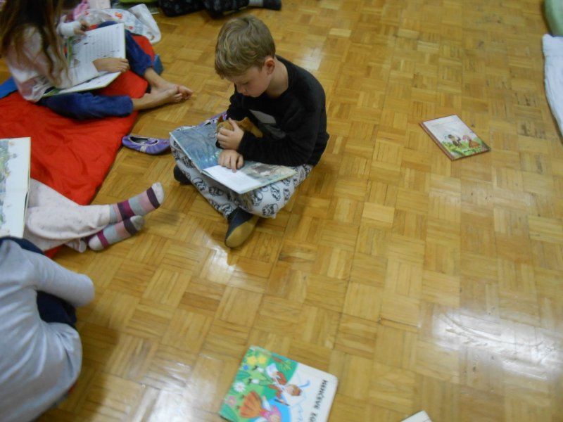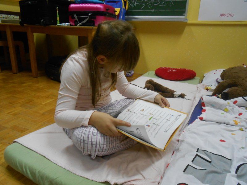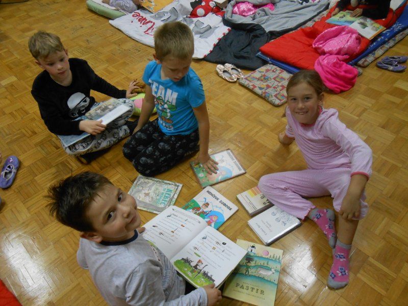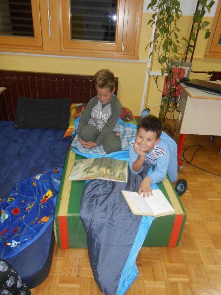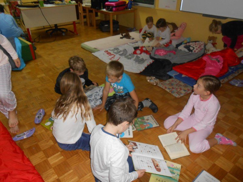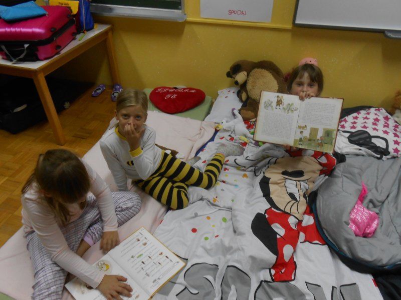 11. in 12. 10. 2018 smo imeli noč branja. Že zjutraj smo odšli v SNG Maribor. Ogledali smo si predstavo Gledališče od Ž do A. Bila je zelo smešna. Potem smo odšli v šolo, kjer nas je čakalo kosilo. Ko smo se najedli, smo lahko še malo jedli sladkarije, nato pa smo odšli ven. Tam smo jedli pečene kostanje, klobasice in kruh ter pili sok. Imeli smo tudi pastirske igre kot so zabijanje žebljev, streljanje s fračo in metanje podkev. Morali smo se preizkusiti v vseh igrah. Potem smo se lahko šli igrat. Zvečer smo odšli nazaj v avlo šole. Tudi tam je bila pripravljena igra. Bile so kartice na katerih so bile barve. Otroci, ki so imeli iste barve so sestavljali skupino. Imel sem vijolično barvo. Nato smo s svojo skupino predstavili to, kar je bilo naslikano na sličici. Potem smo se šli v razred malo igrat. Sledila je večerja, ki jo je pripravila masteršef skupina. Tudi pospravili so oni. Nato smo se odpravili v razred. Tam smo se preoblekli v pižame in umili zobe. Pred spanjem smo gledali film Bikec Ferdinand. Ko smo se naslednje jutro zbudili, smo nadaljevali z gledanjem filma. Potem smo odšli na malico. Pri angleščini smo gledali Mr. Beana in smešnice. Pri drugih predmetih pa smo se igrali. Samo pri naravoslovju smo se učili. Sledilo je kosilo in podaljšano bivanje.