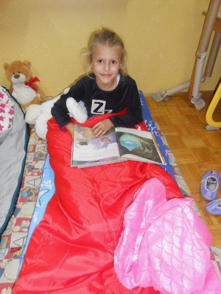 V četrtek, 11. 10. 2019, je bila noč branja. Zjutraj smo odšli bolj hitro na malico. Nato smo se odpeljali v gledališče v Maribor. Ker smo še imeli čas, smo hodili po mestu. Ko je bila ura za začetek predstave, smo šli v gledališče. Predstava je bila lepa. Ko smo šli domov nazaj v šolo, smo imeli gimnastika. Potem smo šli ven. Pekli smo si kostanje in klobase. Zunaj smo se lahko igrali s fračo, z podkvami in žeblji. Ob šesti uri smo šli v šolo. V avli smo dobili slike, ki smo jih morali sestaviti. Ob sliki smo morali povedati, kaj je na sliki. Razdelili smo si vloge in pokazali. Potem je učiteljica poklicala mojo mamico in šla sem domov, ker nisem hotela prespati v šoli. Naslednje jutro me je Jan peljal v šolo, ker ni bilo gasilskega avta. Ko sem prišla v šolo, je bila malica, a nisem nič jedla, ker sem zajtrkovala doma. Potem je bil normalen pouk in sem normalno šla domov z gasilskim kombijem.