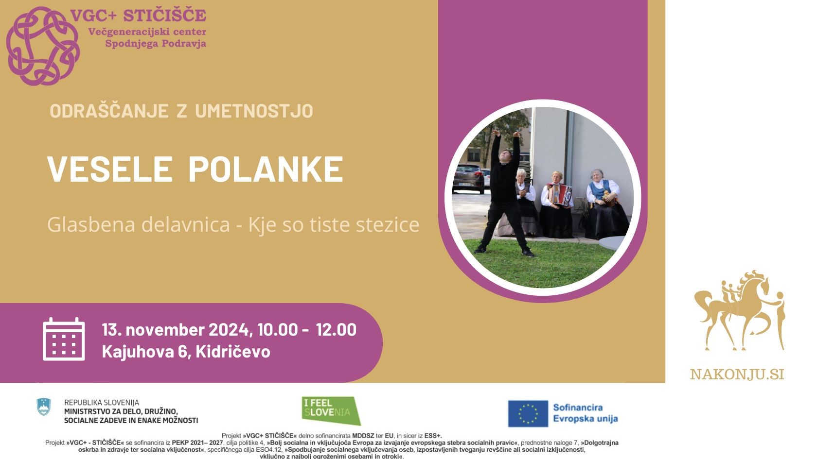 Vabimo vas na glasbeno delavnico "Kje so tiste stezice" z Veselimi Polankami, ki bo dne 13.11.2024 od 10.00 do 12.00 potekala v prostorih VGC+ Stičišče.