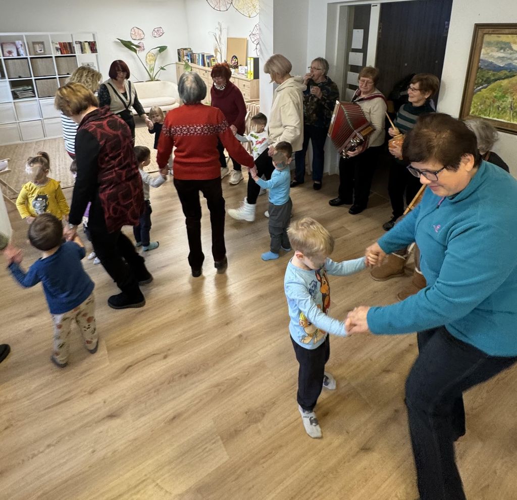 Eno takšnih čudovitih srečanj se je odvilo v VGC+ Stičišče, kjer so se otroci iz Vrtca Kidričevo srečali s starejšimi občani ob glasbi, ki so jo predstavile ljudske pevke Vesele Polanke. Ob spremljavi tradicionalnih instrumentov so otroci lahko slišali pesmi, ki so jih prepevali v časih, ko ni bilo elektronskih naprav in medijev.
