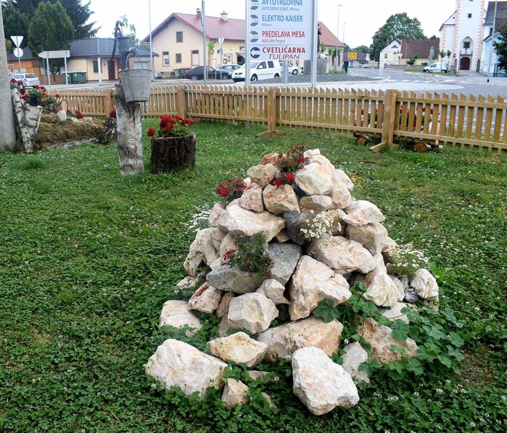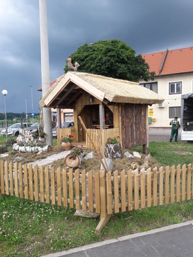 Z delom pridnih rok naših članic in članov smo se hitro lotili dela. Zasadili smo pelargonije, katerih različne sorte so bile vidne na oknih kmečkih hiš že v preteklosti in so se ohranile vse do danes. S postavitvijo skalnjaka, pergole ter starega studenca smo podobo celote še popestrili. Za namen prostočasnih druženj članov našega društva, vaščanov in pa morebitnih popotnikov smo namestili mizo in klopi. Pozornost pritegnejo tudi razstavljene kokoške, katere smo sicer izdelali za velikonočno razstavo, ki pa je zaradi izrednih razmer letos odpadla. Lesena hišica je za konec dobila tudi kritino iz slame. Ta tradicionalen gradbeni element je bil v preteklosti zelo pogost, danes pa je že skoraj pozabljen in tudi mojstre za takšno opravilo je težko najti. Zato smo še toliko bolj veseli in ponosni, da nam je uspelo s pomočjo dveh mojstrov, ki sta svoje delo opravila več kot odlično ter tako dodala piko na i celotni podobi našega razstavišča.