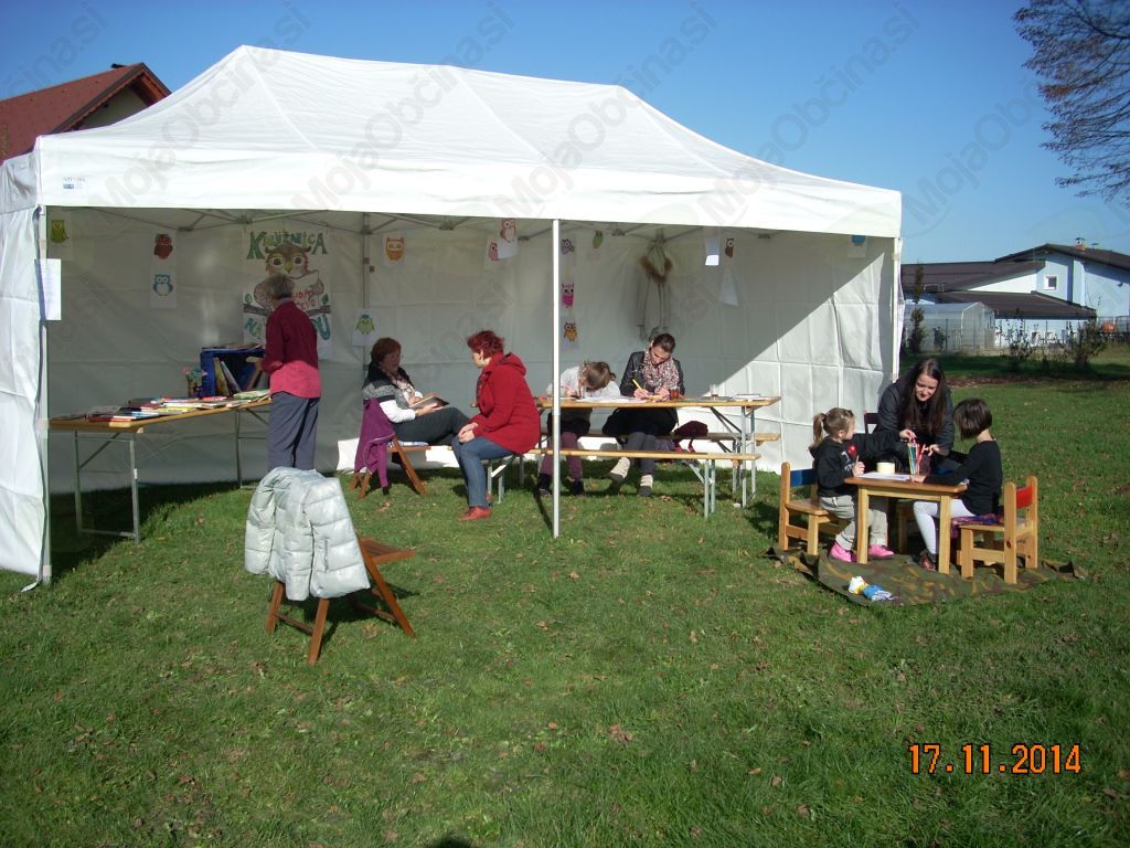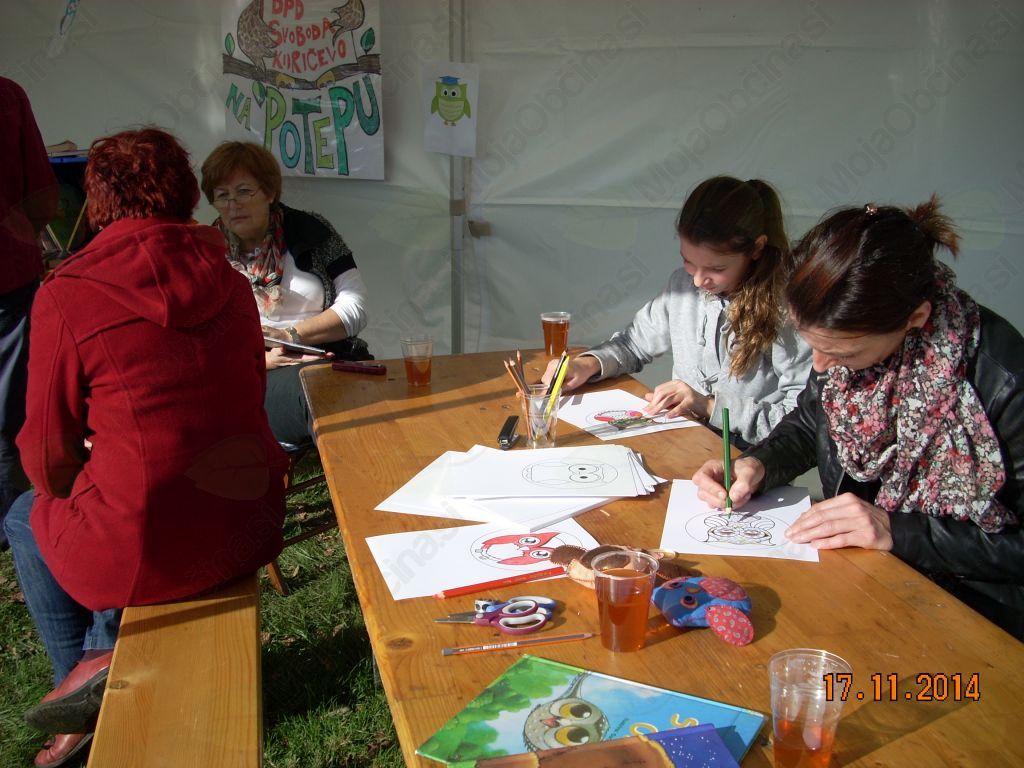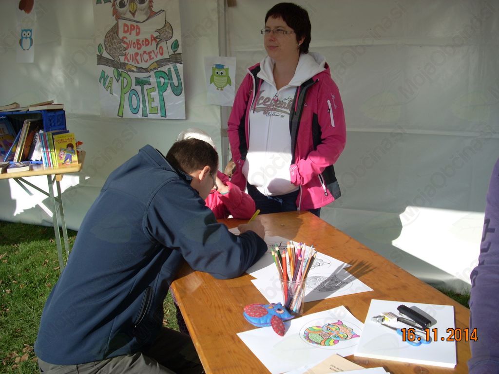 V nedeljo, 16. 11. 2014, se je v Konjeniškem parku Starošince odvijala prireditev V objemu skupnosti Kidričevo. Tam smo nevladne organizacije predstavile program za leto 2015, ki je namenjen osebam iz ranljivih skupin občine Kidričevo. Sodelovalo je kar nekaj društev. Obiskovalci so lahko ustvarjali in celo jahali konje. Naše društvo DPD Svoboda Kidričevo je na prireditev pripeljalo zbirko knjig iz naše knjižnice, ki je bila namenjena tako otrokom in mladostnikom kot starejšim. Obiskovalci so prebirali knjige, literarno in likovno poustvarjali zgodbe in za konec si je vsak pobarval svojo sovico (simbol znanja, modrosti in knjižnic). Najmlajšim otrokom, ki še ne znajo brati, smo knjige prebrali mi. Kljub zelo lepemu in sončnemu vremenu je bilo zelo malo obiskovalcev. Naslednja prireditev se bo zagotovo zgodila in mi bomo zraven. Se vidimo.