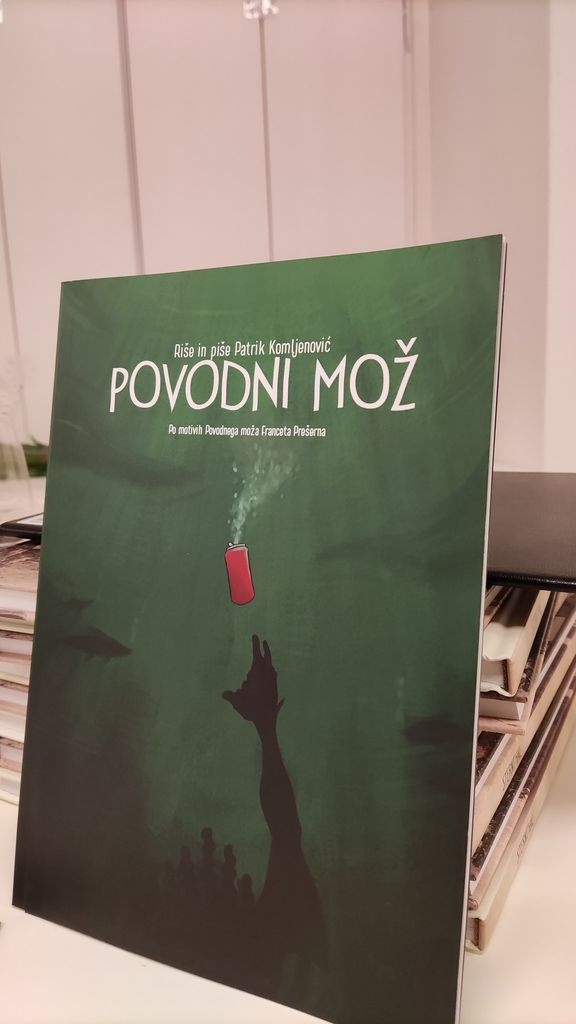 Patrik nas je na začetku popeljal v zgodovino stripa, vse od kratkih sekvenčnih slik v Mezopotamiji in Egiptu, pa do stripov o super junakih in grafičnih novel. Za svoje delo je izbral strip, saj je lažje razumljiv današnji mladini kot pa samo golo besedilo Povodnega moža. Razložil je, kako se je lotil ustvarjanja in kdo mu je pri tem pomagal, nato pa je na zanimiv način interpretiral svojo zgodbo. Ves strip je prepleten s Prešernovimi verzi ter z veliko ljubljanskega narečja in slenga, ki je za nas, starejše Štajerce, predstavljal kar velik izziv. Avtor nam je z velikim navdušenjem prebral tudi nekaj »oblačkov« iz svojega stripa. Razložil je trodelno obliko stripa, ki se vidi v zgodbi in barvah. Povedal je, da je strip nastal delno na papirju, nato pa je bil skeniran ter digitalno obdelan in dokončan s pomočjo računalnika.