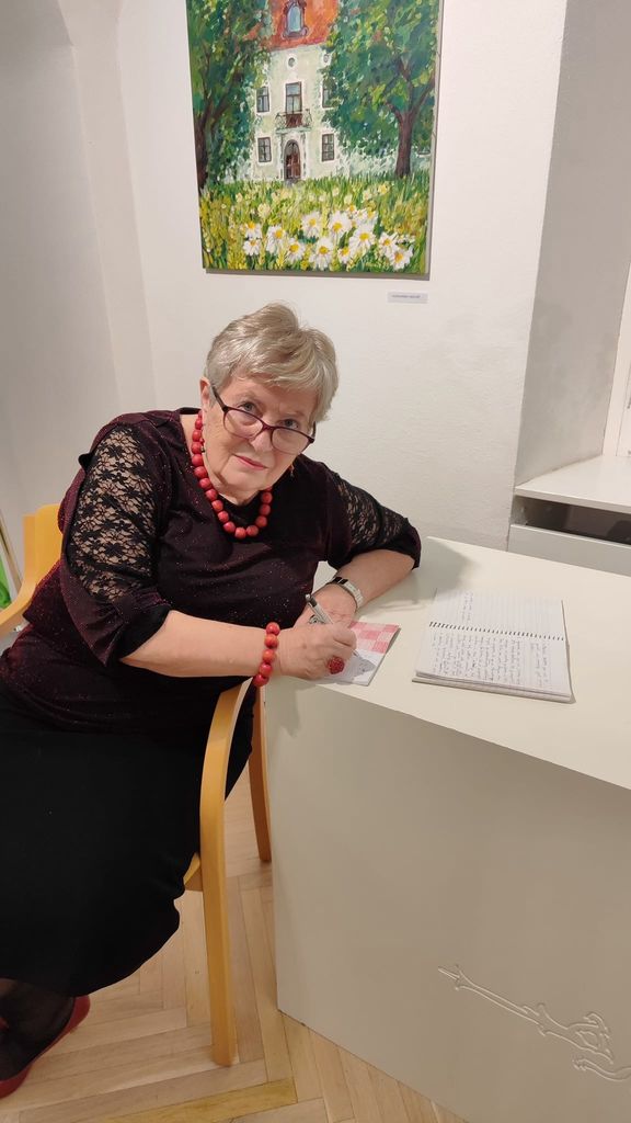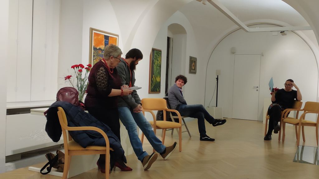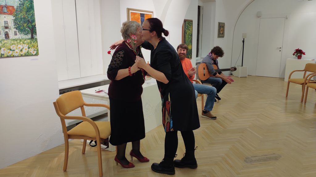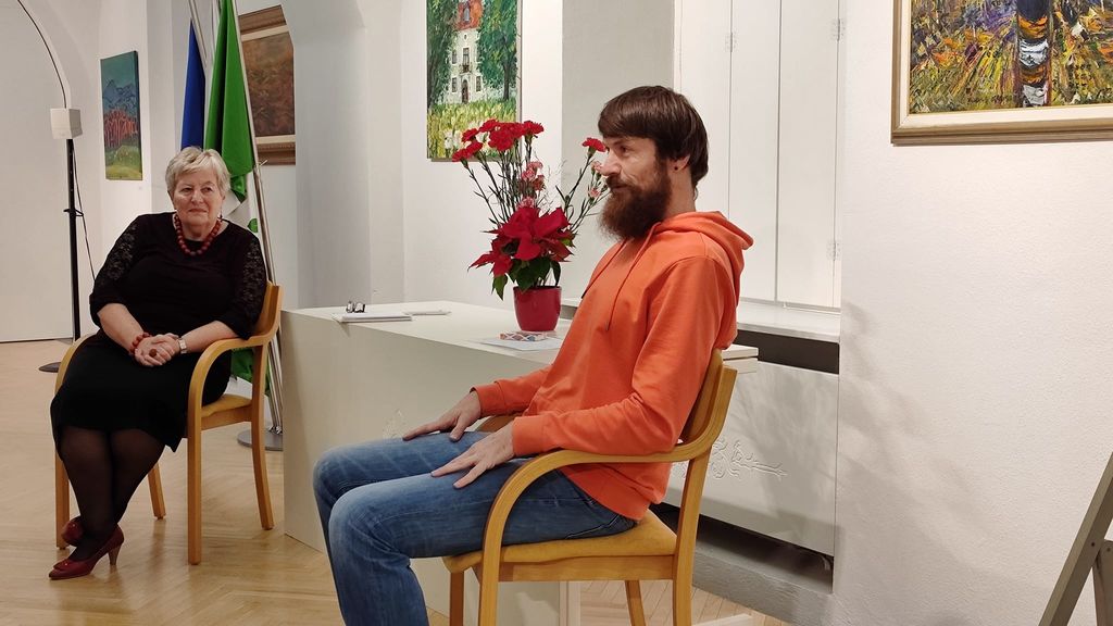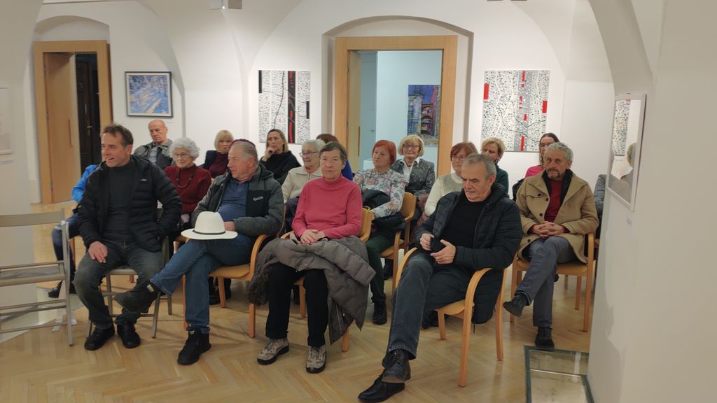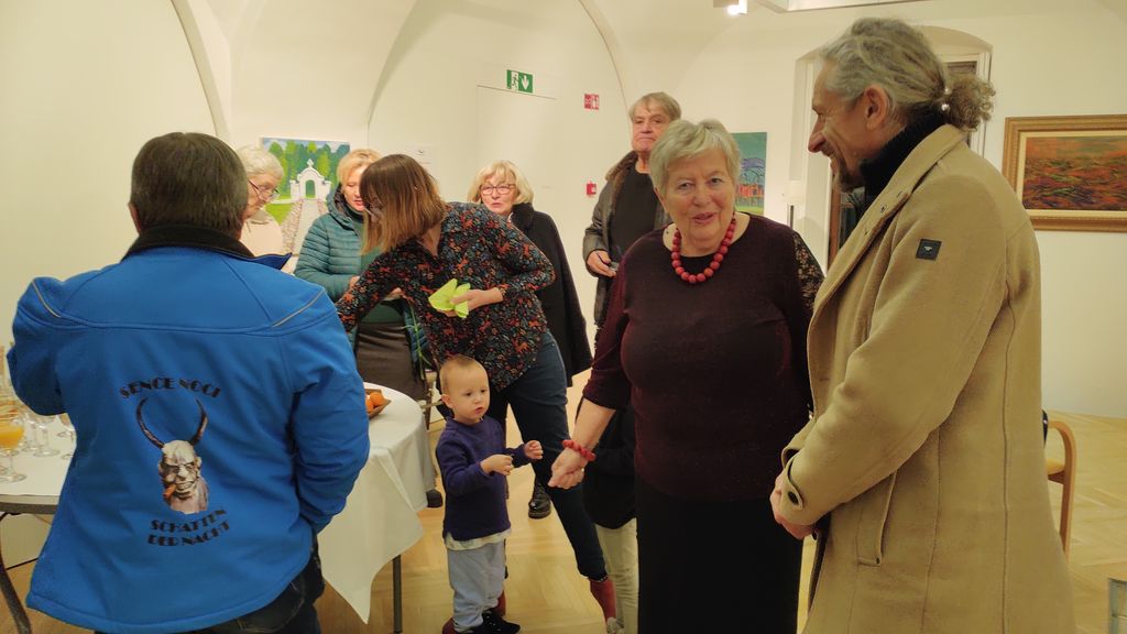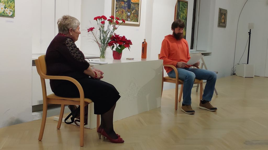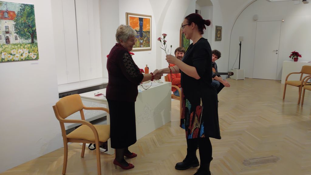 K besedi je bila povabljena še vodja likovne sekcije, Aleksandra Vidovič, ki nas je popeljala v dve desetletji likovnih kolonij DPD Svoboda Kidričevo. Utrinki teh dvajsetih let so krasili stene poročne dvorane dvorca Sternthal. Vsem ustvarjalcem in gostu literarnega večera smo se zahvalili s cvetom.