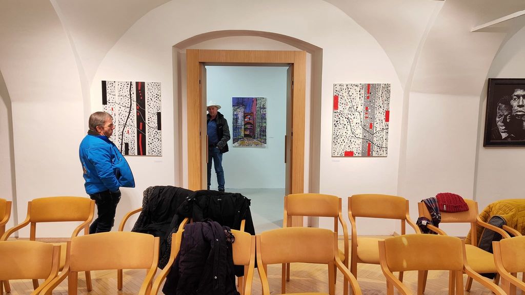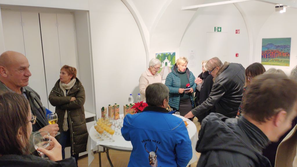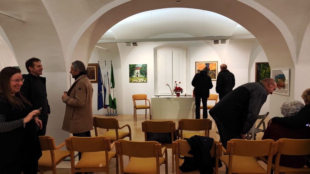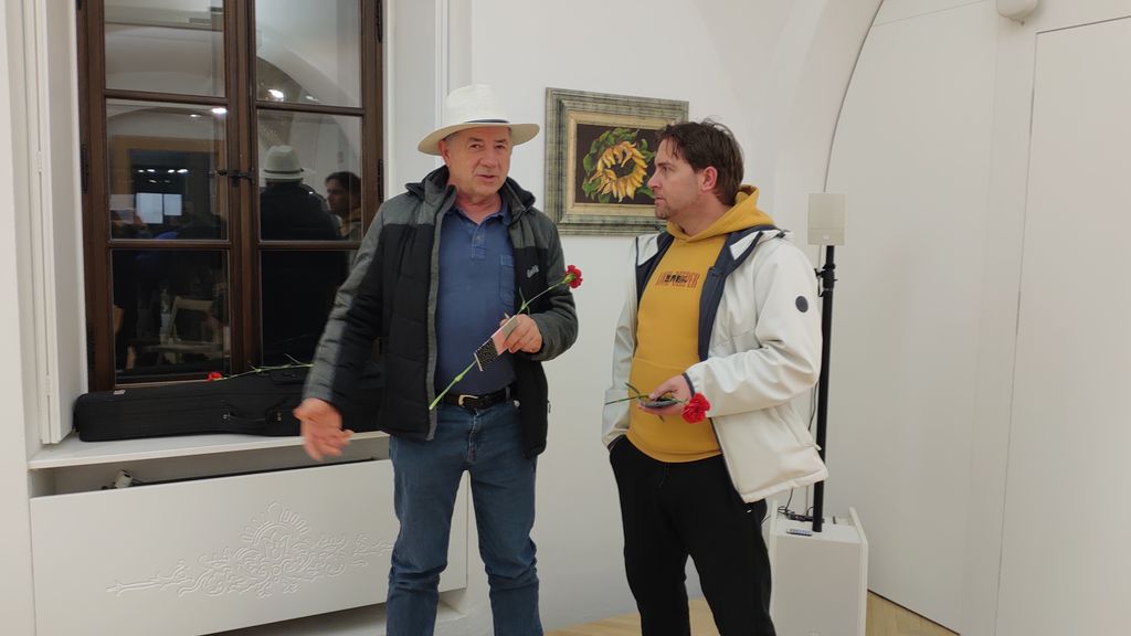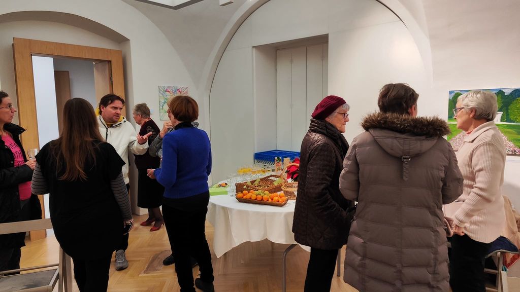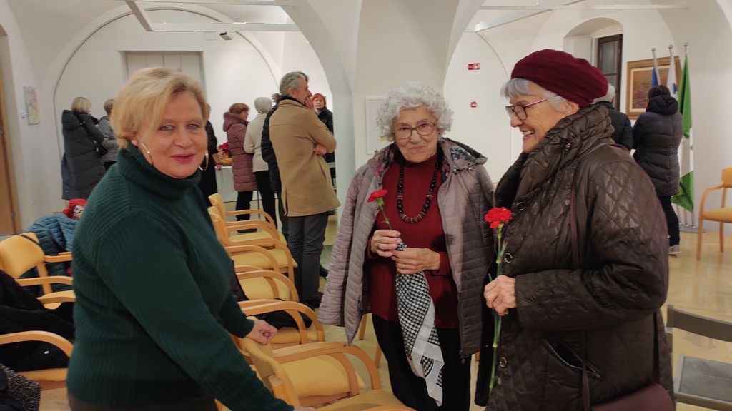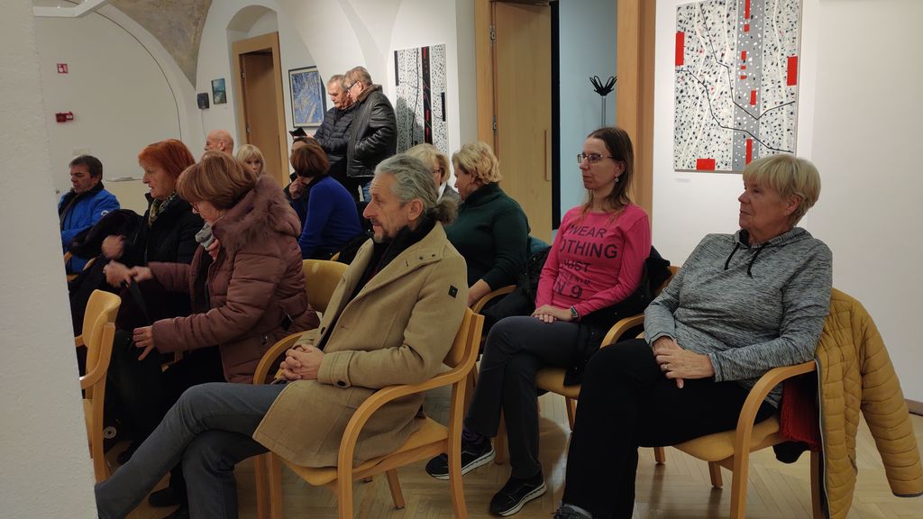 K besedi je bila povabljena še vodja likovne sekcije, Aleksandra Vidovič, ki nas je popeljala v dve desetletji likovnih kolonij DPD Svoboda Kidričevo. Utrinki teh dvajsetih let so krasili stene poročne dvorane dvorca Sternthal. Vsem ustvarjalcem in gostu literarnega večera smo se zahvalili s cvetom.