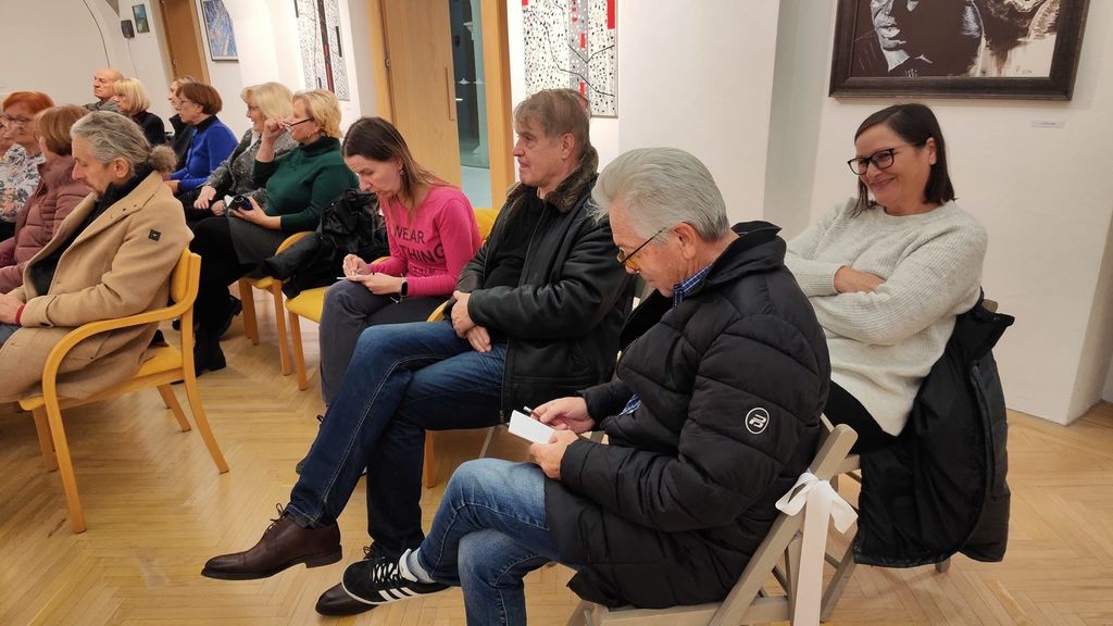 Slišali smo kar nekaj avtorjevih haikujev. Za popestritev večera je društvo priskrbelo beležke in svinčnike, ki smo jih razdelili med obiskovalce. Ja, prav ste prebrali! Tudi naši obiskovalci so imeli možnost, da se sami podajo v svet poezije. Vse, kar so morali upoštevati, je bilo pravilo 5-7-5 zlogov na vrstico. Najpogumnejši so svoje haikuje tudi prebrali in tako pomagali soustvariti literarni večer.
