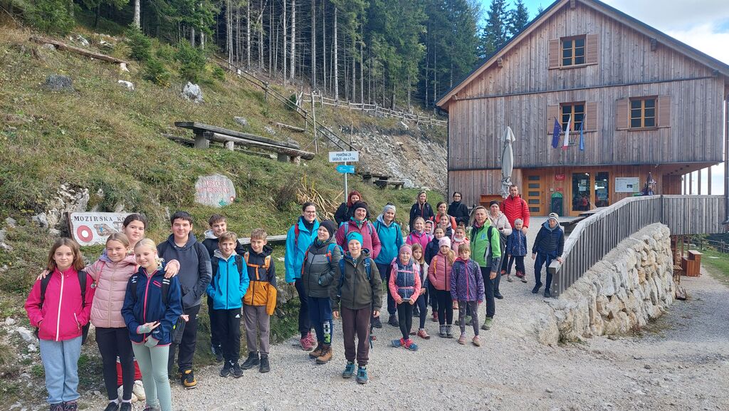 Zaključni del poti nas je vodil proti kapelici in Mozirski koči, kjer smo se okrepčali, podpisali planinske dnevnike in uživali v prijetnem vzdušju. Polni lepih vtisov smo se nato vrnili do Alpskega vrta, od koder smo se odpravili proti domu – utrujeni, a zadovoljni, kot se za uspešen planinski dan spodobi.