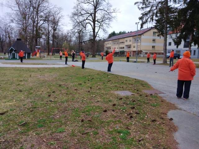 Spet telovadimo, na varni razdalji, na zraku, v družbi, srečne, da se zopet lahko razgibamo, nadihamo svežega zraka in kakšno rečemo. Kdo ve, kako dolgo še? Izkoristile bomo ta podarjen čas in uživale.