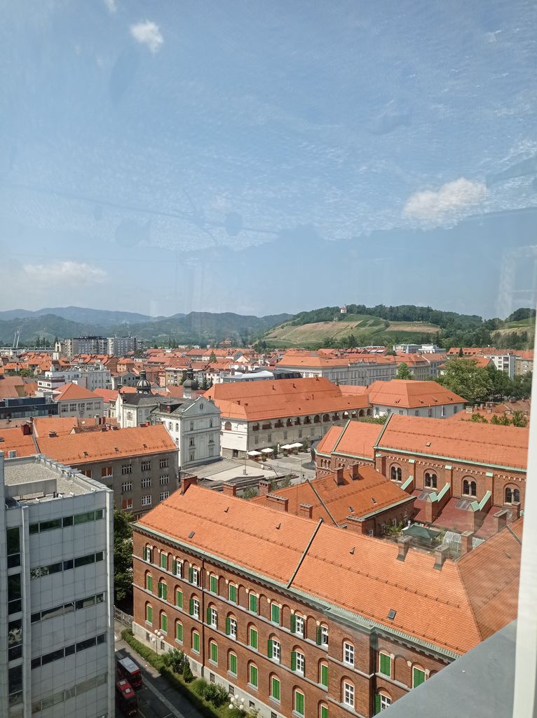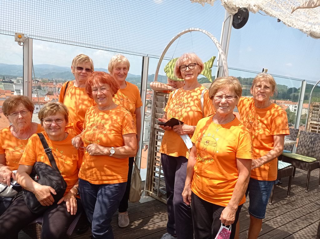 Za konec smo si ogledale mesto z okolico še s ptičje perspektive, saj smo se odpravile na teraso Luft 360, ki je na vrhu Slavije. Ker je bilo vreme jasno, je pogled segal vse do Treh kraljev čez Mariborsko Pohorje, do Kalvarije, Piramide, Malečnika in na južni strani do Haloz in Boča.