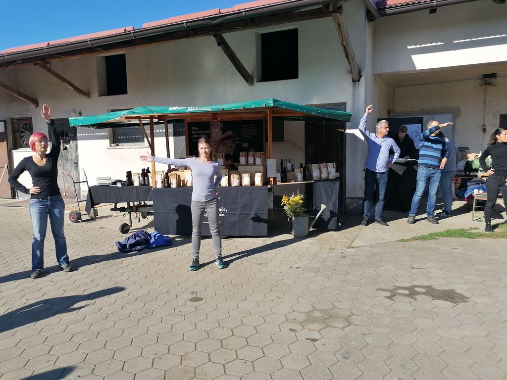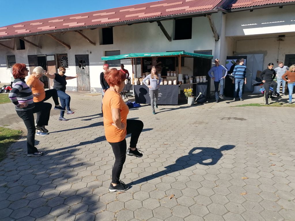 Na slovenski dan športa smo dogodek začeli s telovadbo. Vsi udeleženci smo se za dober dan razgibali po metodi 1000 gibov.