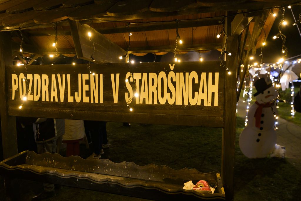 Obiskovalci naše prelepe vasi pa so bili vsak decembrski večer po 17. uri vabljeni, da se sprehodijo skozi našo praznično okrašeno vas in se ustavijo na kozarček kuhančka ali čaja pred muzejem Zbirka podeželja Starošince. Otroci so se lahko igrali na igralih, vsi pa so si lahko v muzeju ogledali našo bogato založeno zbirko starih strojev in pripomočkov, ki so jih uporabljali naši predniki za delo na polju.