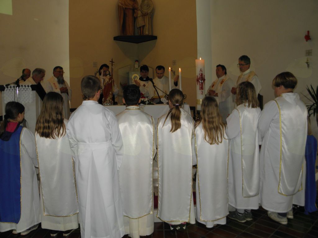 Ob 15. uri smo začeli z molitveno uro pred Najsvetejšim. Zbralo se nas je lepo število vernikov. Ob 16. uri je sledila sveta maša, ki jo je ob somaševanju dekanijskih duhovnikov in domačega župnika Antona Pačnika daroval pater Andrej Sotler. Poslušali smo božjo besedo, premišljali o njej in prosili za nove duhovne poklice, da nam nikoli ne bi zmanjkalo delivcev Božjega kruha – delivcev Božjega življenja, za stanovitnost in svetost poklicanih.