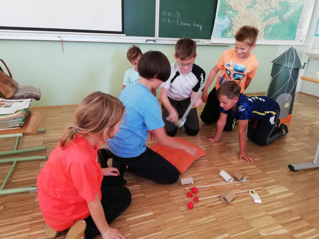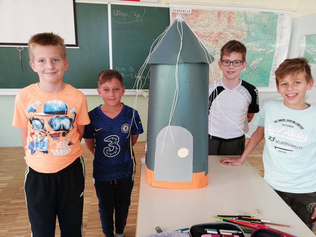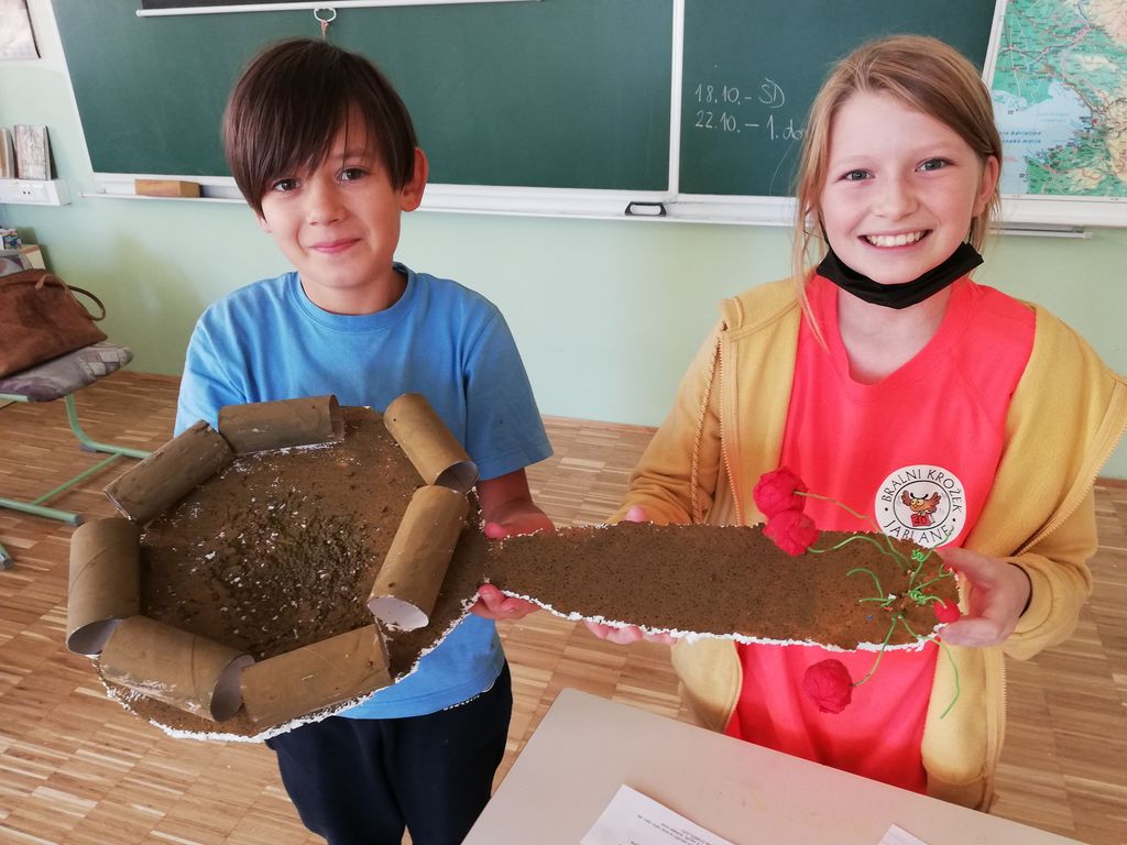 Kosovirjema na leteči žlici (S. Makarovič) sta učenca izdelala žlico iz stiroporja, iz katere rastejo paradižniki.
