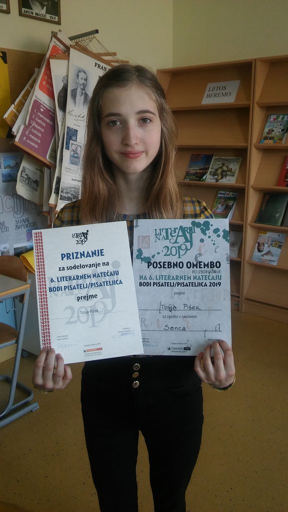 Letos je v okviru Pionirskega doma potekal že 6. literarni natečaj – Bodi pisatelj/pisateljica 2019. S svojim delom Senca je sodelovala tudi naša učenka Tosja Pišek.