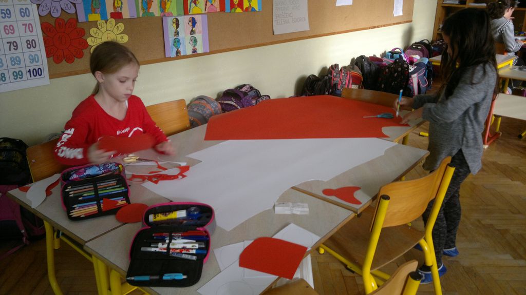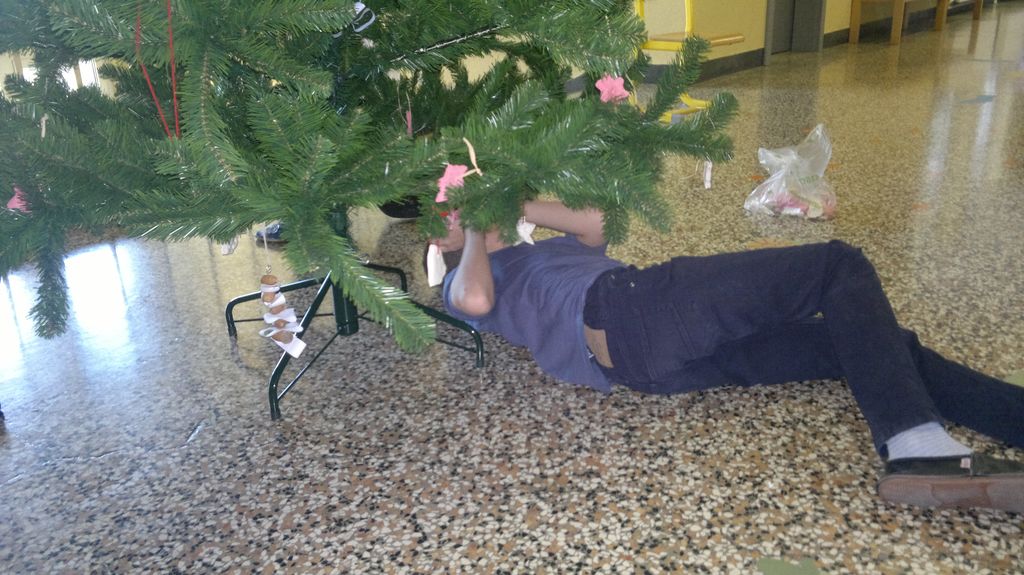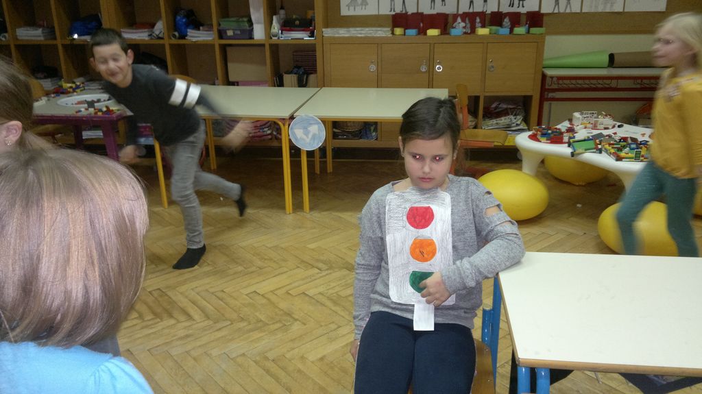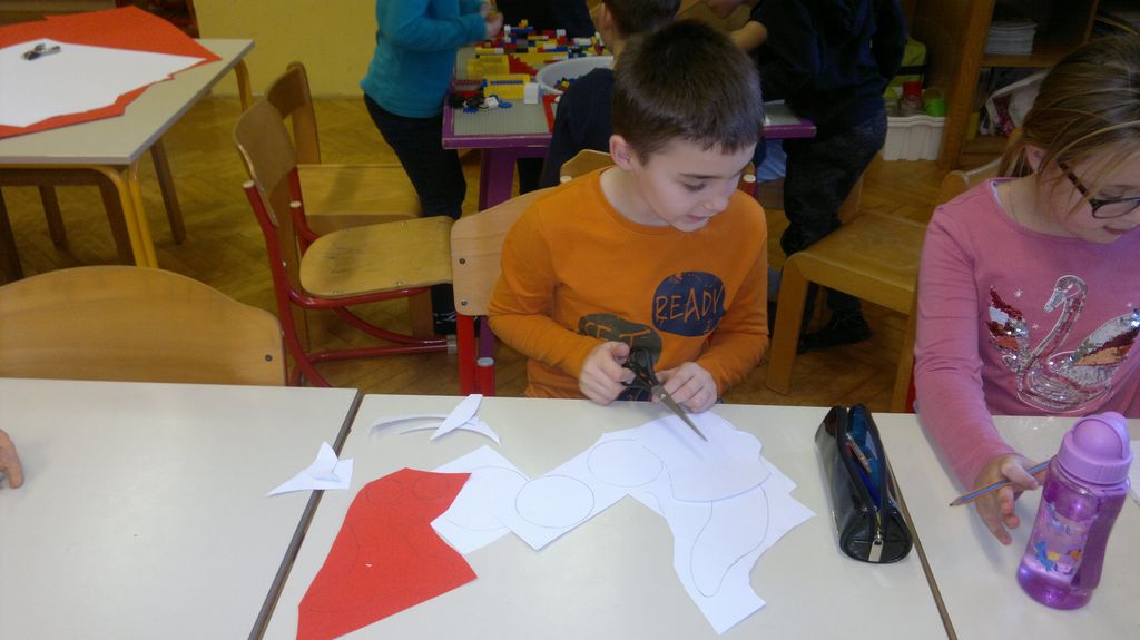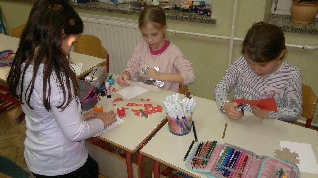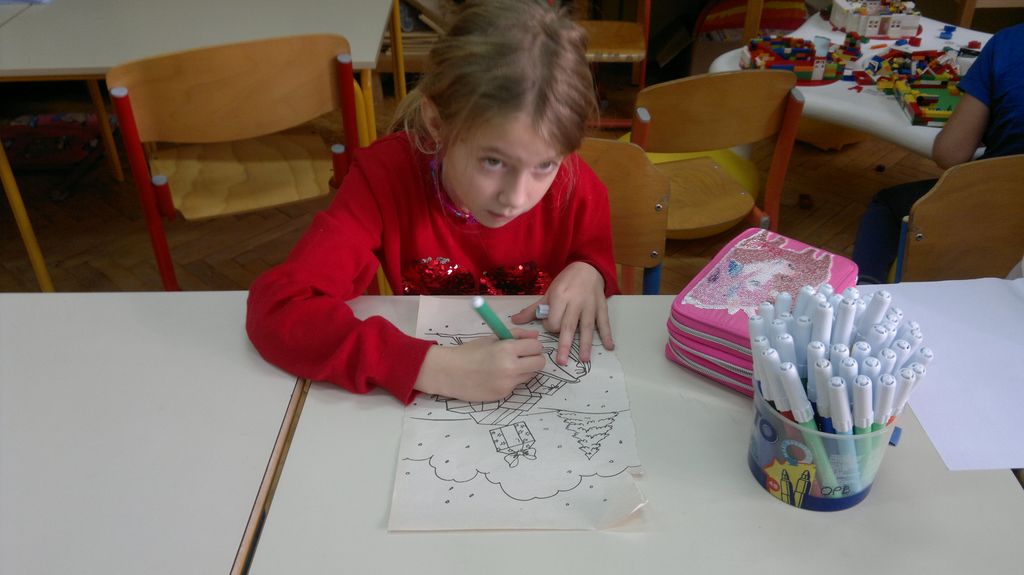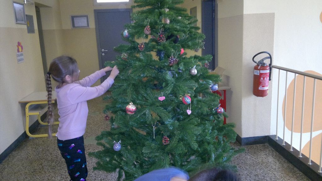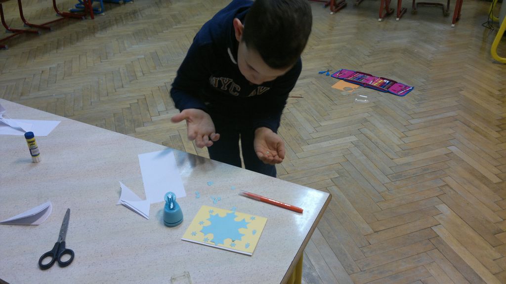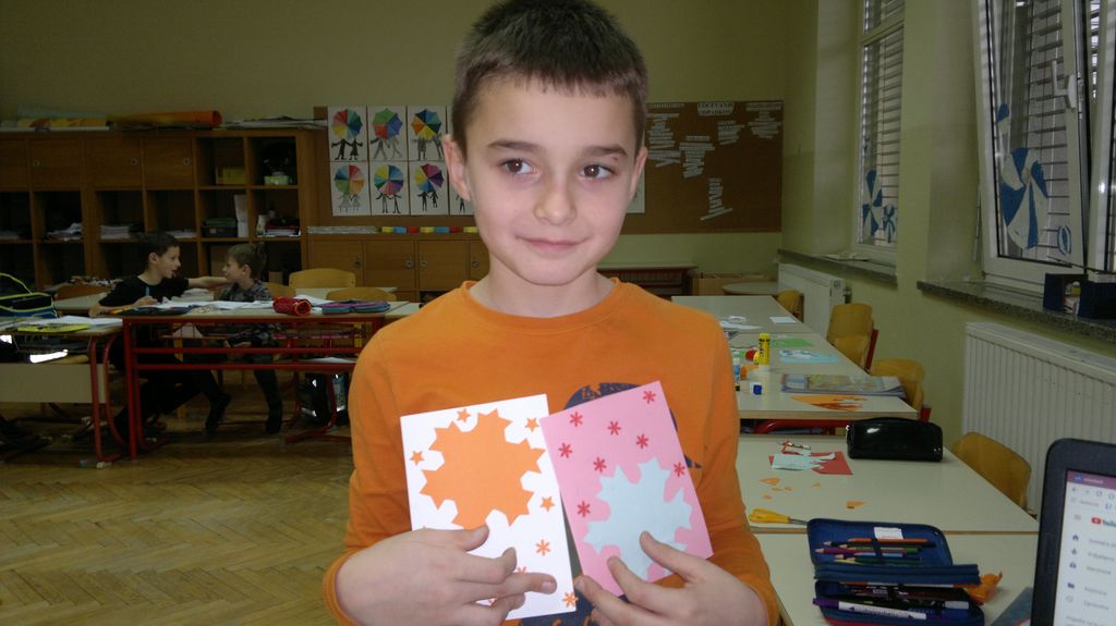 Veseli december se je kot vsako leto začel pestro. V tem prazničnem vzdušju smo se vsi navdušili nad izdelovanjem zimske in božične dekoracije. Iz časopisnega papirja smo izrezovali razno velike kroge (žoge), ki smo jih pobarvali z modro in belo tempero. Pritrdili smo jih na okna. Tudi naša okna na hodnikih smo okrasili. Iz belega papirja smo izrezovali snežinke in jih pritrdili na njih. Ker se je bližal Božič, smo na hodniku pred razredi postavili in okrasili smrečico. Sredi decembra smo izdelali še voščilnice in vanje zapisali majhna voščila našim družinam. Sejali smo božično žito in barvali božične pobarvanke. Prav tako smo si izdelali snežaka vrtljivka. Na koncu smo si izdelali staro igračo. Vrezali smo meter volne in naredili zanko. Naučili smo se prepletanja vrvice in kako se preda sošolcu. V tem mesecu smo nekaj časa posvetili prometnim znakom. Naučili smo se, kako jih ločiti po obliki in barvi. Nekaj znakov smo si izdelali in v razredu sestavili cestišče. Ob hoji med mizami, so učenci morali upoštevati prometne znake in semafor. Vsi smo se veliko naučili in nasmejali. Ker je bilo decembra tako toplo, smo veliko časa preživeli tudi zunaj. Šli smo se razne igre in se zabavali.