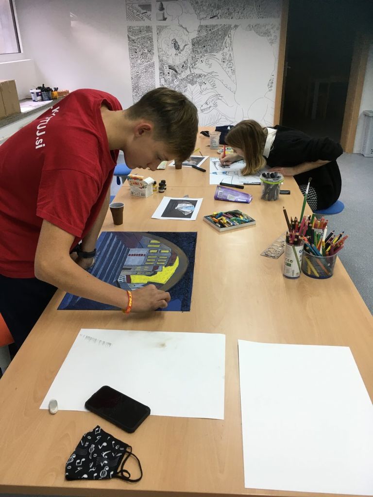 Letošnji udeleženci dopisne Male Groharjeve kolonije 2020 so Tija Tamše (8. a), Anna Nikola Medne (9. a) in Tim Mlinarič (9. b). Učenci so tokrat ustvarjali po opazovanju fotografij Škofje Loke. Izbrali so si različne likovne tehnike in se izrazili v svojem lastnem slogu.