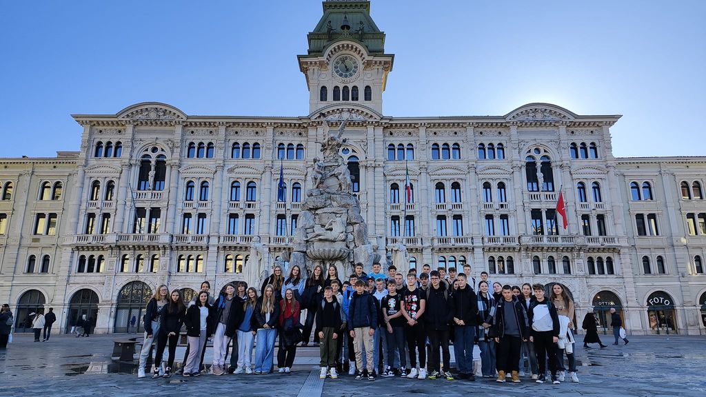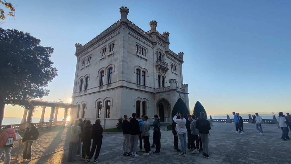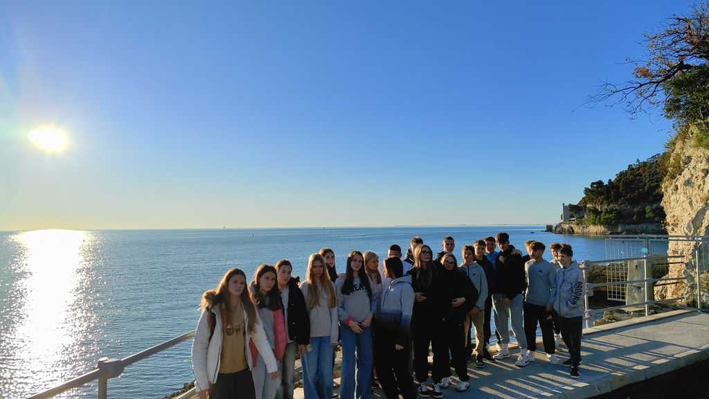 Naslednji dan smo se odpravili na zajtrk in zapustili hostel. Sledil je ogled Trsta, ki je nadvse zanimiv in vreden ogleda. Razvrstili smo se po skupinah in se odpravili do izbrane destinacije, kjer smo iskali namige za rešitev naloge in se ob tem naučili nekaj novega. S skupnimi močmi smo vsi ustrezno opravili nalogo. Kasneje smo sošolcem poročali o posameznih znamenitostih. Za konec smo odšli na kosilo in tako zaključili naš ogled mesta. Z avtobusom smo pot nadaljevali do gradu Miramare. Grad je bil v lasti habsburške rodbine, natančneje Maksimilijana I. Mehiškega in njegove žene Carlote, vendar je kasneje postal državna last. Tam smo si ogledali čudovite botanične vrtove, zunanjost gradu ter uživali ob pogledu na morje. Zatem smo se sprehodili po notranjosti gradu, kjer smo s pomočjo vodenega ogleda iskali zanimivosti gradu. Po ogledu nas je pot vodila naravnost proti domu.