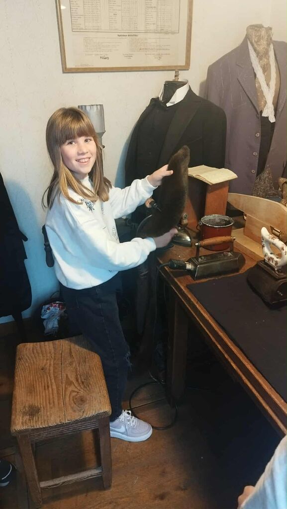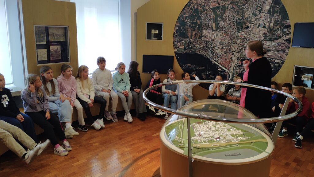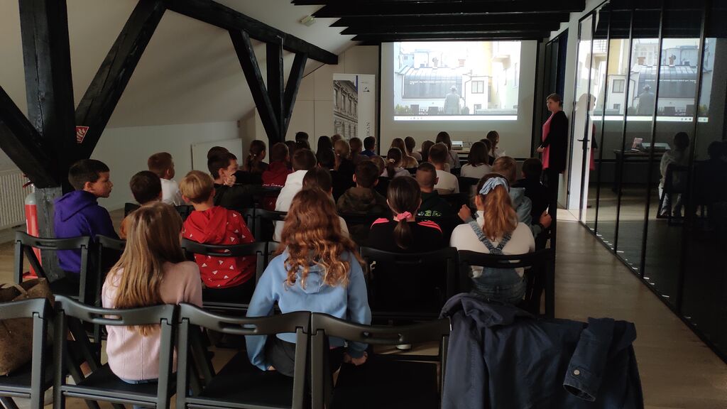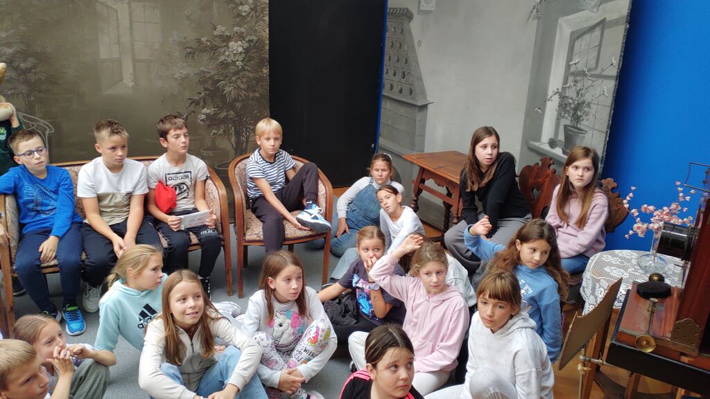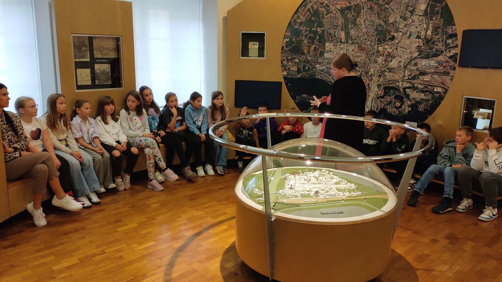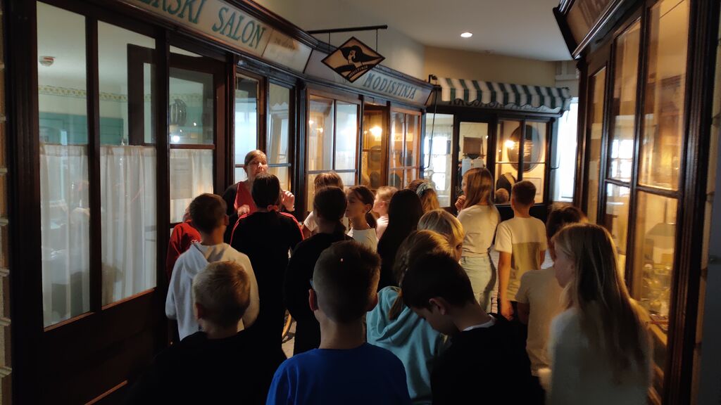 Ko smo prispeli v mesto in stopili z vlaka, smo se odpravili v središče mesta in obiskali otroški muzej Hermanov brlog. Tam smo se veliko naučili o spoštovanju, denarju in življenju meščanov v prejšnjem stoletju. Sledila je ustvarjalna delavnica, kjer smo izdelali darilne kupone za naše najbližje. Pot nas je med drugim vodila tudi v Pelikanov stekleni fotografski atelje, kjer nam je zabaven fotograf razkazal muzej. Veliko novega smo izvedeli o fotografiranju nekoč in uživali ob pogledih na stare fotografije. Sprehodili smo se po sobanah Josipa Pelikana in se vživeli v njegovo takratno življenje. Po ogledih muzejev smo se odpravili na sprehod po mestu in si privoščili kakšen skromen spominek.