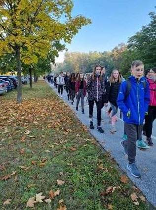 V avli šole smo se zbrali ob 8.20. Vzeli smo sendvič in plastenko vode, se obuli in pred šolo počakali na vse učence. Ko smo se vsi zbrali, smo se odpravili na pohod. Peš smo odšli v Lovrenc in športno pot nadaljevali proti Strnišču. Ko smo prispeli do Strnišča, smo odšli nazaj proti Lovrencu in nato proti učilnici v naravi. Ob železnici smo se odpravili proti dvorcu Sternthal, nato pa se počasi vračali proti šoli mimo Vrtca Kidričevo. Med potjo smo se tudi nekajkrat ustavili, se fotografirali, pojedli sendviče, popili pijačo in pojedli nekaj sladkega za ponovno energijo. Celoten športni dan je trajal štiri ure. Zaključili smo ga s kosilom in odhodom domov.