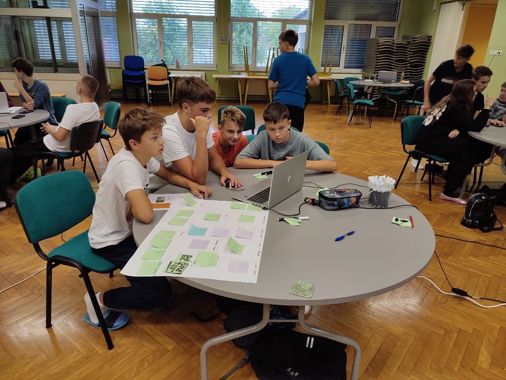 Na začetku smo izvedli uvodno srečanje, kjer so učenci dobili vpogled v podjetniški svet ter se seznanili s cilji in nalogami projekta. Uvod je bil zasnovan tako, da je mladim nudil temeljno razumevanje podjetništva, inovacij in pomena sodelovanja v skupinah. Učenci so imeli priložnost spoznati korake, ki jih bodo spremljali skozi celoten proces, ter se pripraviti na prihajajoče izzive.