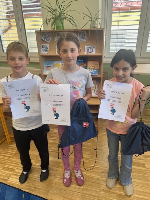 Tretješolci Jon, Mia in Iskra so pridobili nagrade na literarnem natečaju »Naravne in druge nesreče«, ki ga je razpisalo Ministrstvo za obrambo.