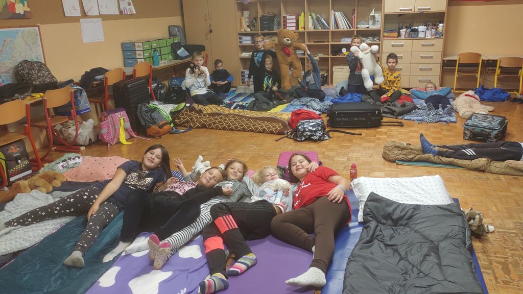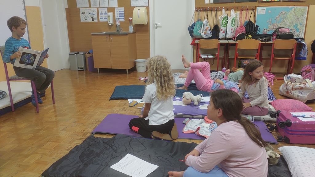 V četrtek, 14. oktobra 2021, smo učenci podružnične šole v Lovrencu imeli noč branja. Po opravljenih dopoldanskih dejavnostih in kosilu smo se razdelili v pet skupin, saj so nam učiteljice pripravile različne spretnostne igre, v katerih smo se pomerili. Hišnik Ivan nam je medtem pridno pekel kostanje. Sami smo si spekli še klobase. Ko je postalo hladneje, smo se odpravili v razrede. Pripravili smo si ležišča in brali knjige. Pridno smo poustvarjali vsebino. Po večerji smo se preoblekli v pižame in prebrali še kakšno knjigo. Za konec smo pogledali risanko ali film, nato pa smo se prepustili spancu in zaspali.