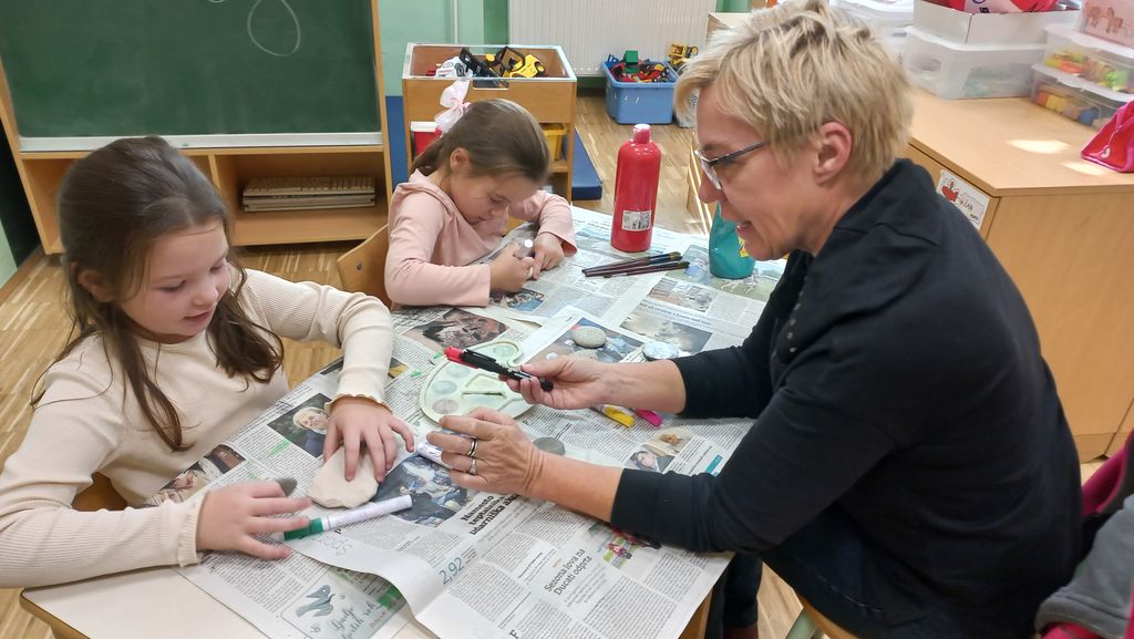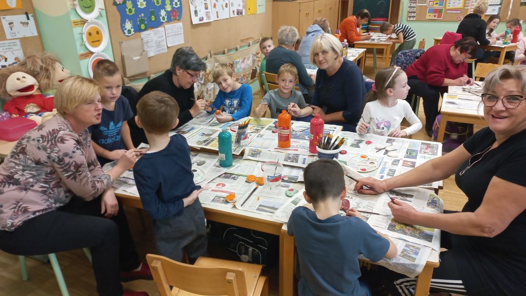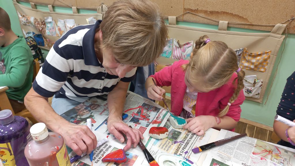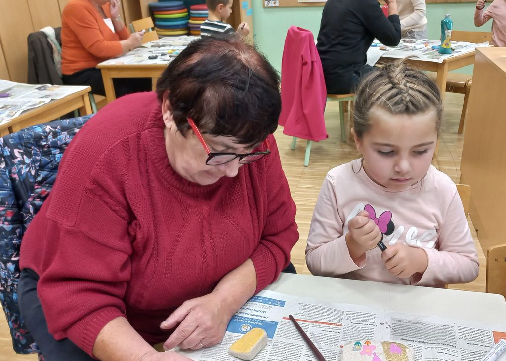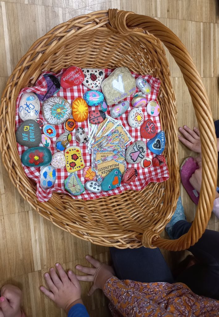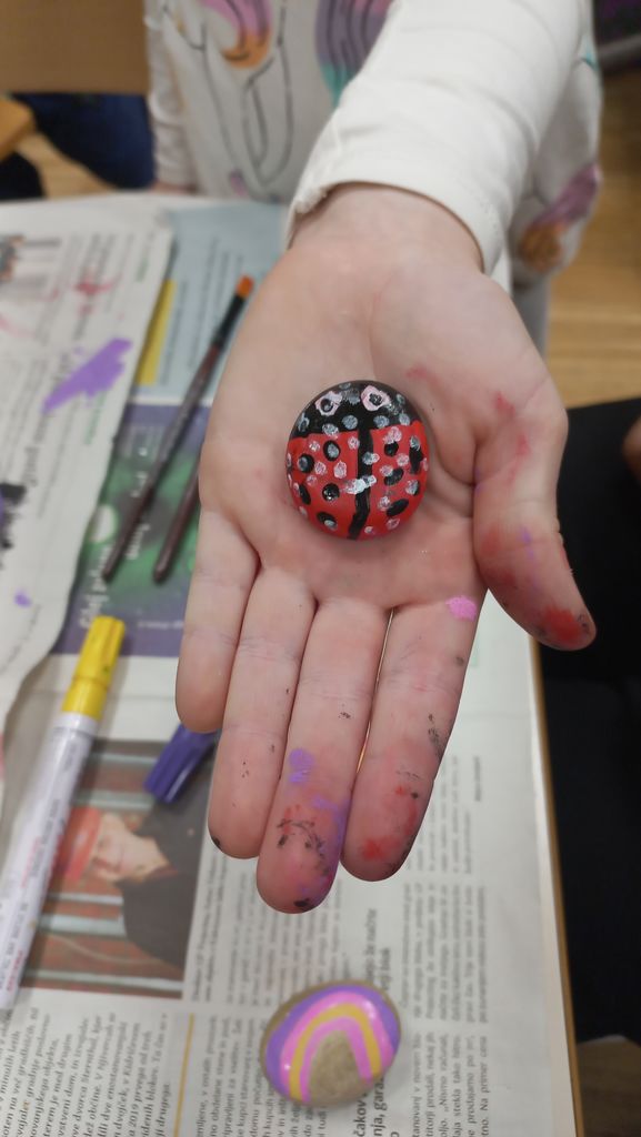 Zato smo v četrtek, 9. 11. 2023, v našo učilnico povabili babice. Z veseljem so se nam pridružile pri poslikavi kamenčkov prijaznosti. V odličnem tandemu s svojimi vnuki in vnukinjami smo ustvarili krasne kamenčke prijaznosti. V ponedeljek, 13. 11. 2023, smo kamenčke nastavili v šoli delavcem šole in našim velikim prijateljem (tutorjem) iz devetega razreda. Presenečenje je uspelo. Na obrazih so se narisali nasmehi. Nekaj kamenčkov pa je pričakalo nove lastnike na naključno izbranih javnih mestih.