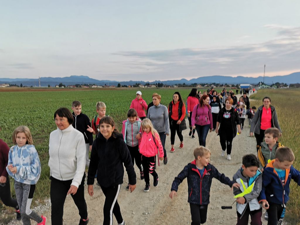 Učiteljica Marija nas je vodila po njej dobro poznanih poteh. Dolga kolona pohodnikov se je vila po cesti mimo šole, skozi Jablane in nato po poljskih poteh. Po slabi uri hoje smo se nič preveč utrujeni vrnili pred šolo, še malo poklepetali in si obljubili, da se zagotovo zberemo zopet prihodnjič.