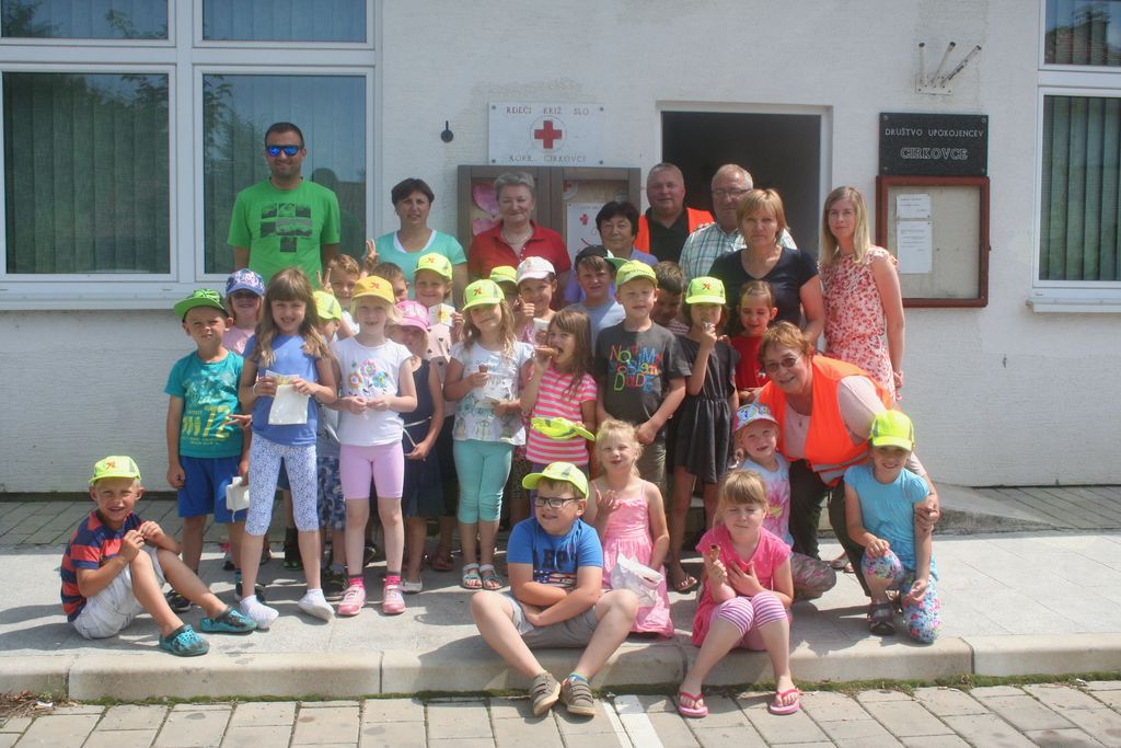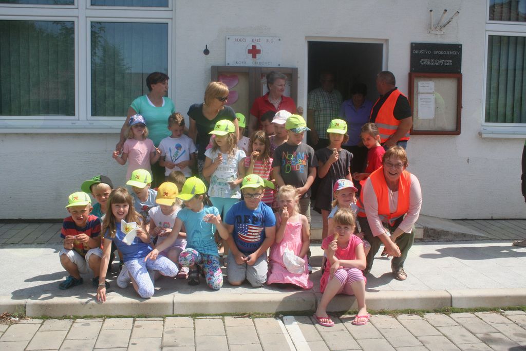 UČENCI 1. RAZREDA OSNOVNE ŠOLE CIRKOVCE SMO BILI V TOREK, 12. 6. 2017, SPREJETI MED MLADE ČLANE RDEČEGA KRIŽA. KO SMO PRIŠLI V NJIHOVE PROSTORE, NAS JE TAM PRIČAKALO NEKAJ LJUDI IZ KRAJEVNE ORGANIZACIJE RK IN NASTOPAJOČE UČENKE IZ 2. RAZREDA. GOSPA PAVLA VELER NAM JE POVEDALA, KAJ DELAJO PRI RDEČEM KRIŽU. LANA, TINKA IN BARBARA SO NAM ZAPELE TRI PESMI O PEDENJPEDU. GOSPA PAVLA JE PREDSTAVILA ZGODBO, KAKO JE NASTAL RDEČI KRIŽ. TUDI MI ŽELIMO POMAGATI LJUDEM, KI POTREBUJEJO NAŠO POMOČ. KNJIŽICE SO DOBILI TISTI UČENCI, KI SO POSTALI MČ RK. PODARILA NAM JIH JE PREDSEDNICA RK. VSI SMO DOBILI TUDI NALEPKE Z ZNAKOM RK. PO TEM SPREJEMU SMO SE POSLADKALI IN OSVEŽILI S SLADOLEDOM. PRED ODHODOM V ŠOLO SMO SE ŠE FOTOGRAFITRALI PRED STAVBO, KJER JE TUDI TABLA Z NAPISOM KO RK.