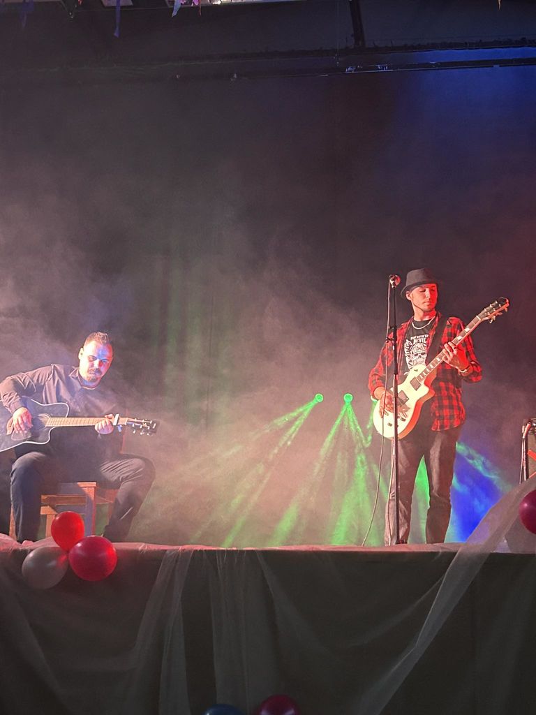 Med preštevanjem glasov pa se nam je na odru pridružil prav poseben gost. Je gradbenik in je glasbenik. Nekdanji učenec Osnovne šole Cirkovce in finalist šova Slovenija ima talent 2023, Jure Kotnik. S svojo skupino ustvarja metal glasbo, vendar se rad preizkusi tudi v drugih žanrih. Na prireditvi ga je spremljal dolgoletni prijatelj in kitarist Žan Rojs. V veliko čast nam je bilo, da sta se prav na naši prireditvi predstavila s svojo prvo avtorsko pesmijo. V imenu šolskega sklada se jima iskreno zahvaljujemo, saj sta nastop izvedla dobrodelno.