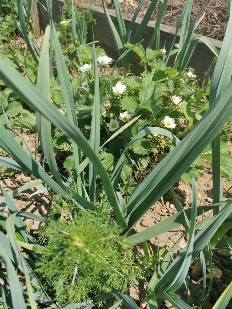 Nato je sledilo rahljanje zemlje, odstranjevanje suhih delov rastlih in odstranjevanje plevela z vrta in potke. Dvignjeni gredi z jagodami smo dodali kompost z našega kompostnega kupa, ki sproti nastaja in je bistvo vsakega vrta. Tako zemlji vrnemo, kar ji odvzamemo.