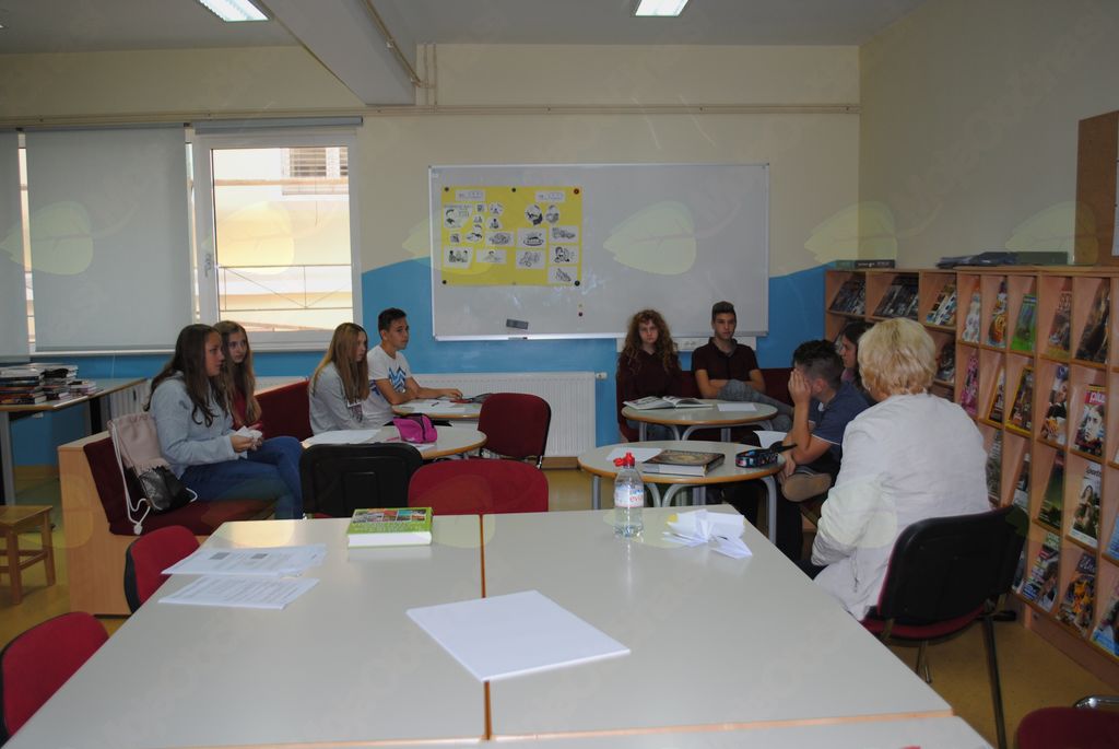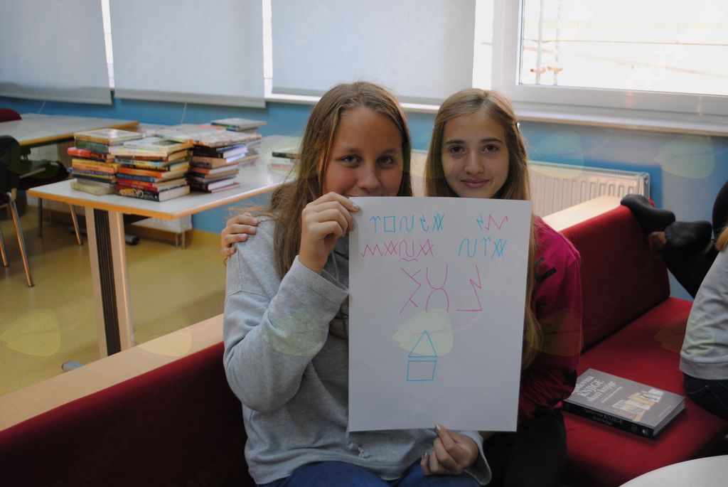 V knjižnici so učenci pod vodstvom knjižničarke Ivanke Čeh pridno brskali po literaturi in raziskovali razvoj pisave, spoznavali različne pisave, bili pa so seveda zelo ustvarjalni in ustvarili celo svojo pisavo.