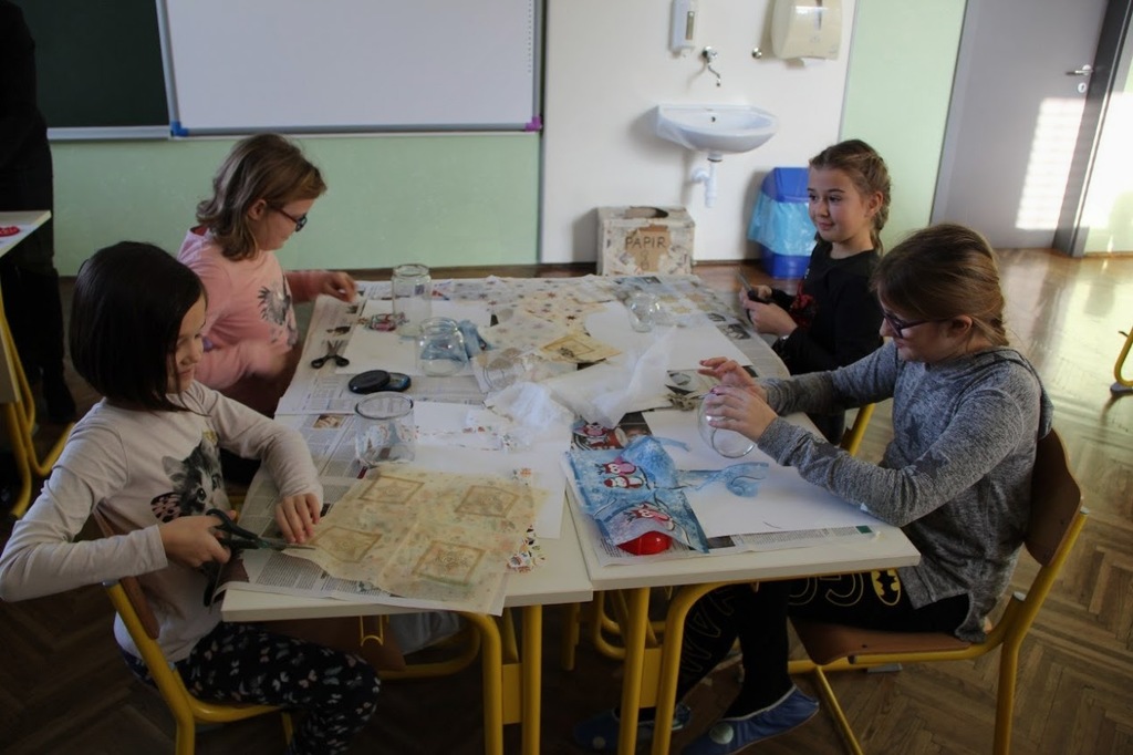 V ponedeljek, 5. 12. 2016, smo imeli učenci od 5. do 9. razreda tehniški dan. Izdelovali smo praznično okrasje iz papirja, volne, tekstila, gumbov, trakov, da bo naša šola v teh predprazničnih dneh še lepša. Učenci 5. razredov so s tehniko kaširanja »oblekli« čiste kozarce za vlaganje v servietke z zimskim motivom. Po želji so dodali žico za ročaj in dekorativno pentljo (vrvica ali trak). 6. razredi so izdelovali voščilnice, broške in lasnice ter šivali okraske. 7. in 8. razredi so šivali okraske različnih oblik. Fantje 9. razredov so najprej napihnili balon v okroglo obliko, nato pa so okrog balona ovili volno in namazali z lepilom. Ovite balone so pustili, da so se posušili, nato pa so balon počili in ga izvlekli iz okraska. Deklice 9. razredov so najprej pomagale v jedilnici pri peki piškotov, nato pa so izdelale vence za vrata. Na koncu je vsak razred izdelal svojo razredno smrečico ali venček za na vrata. Vse izdelke smo razstavili v avli šole, okraske pa obesili na šolsko smreko, ki prav tako krasi avlo šole.