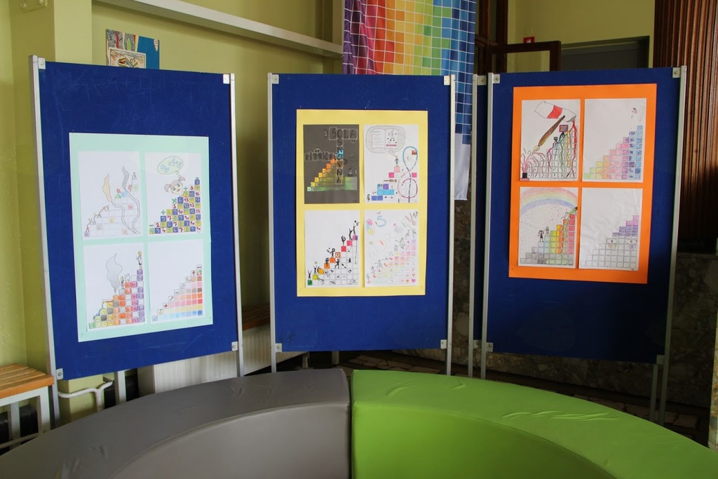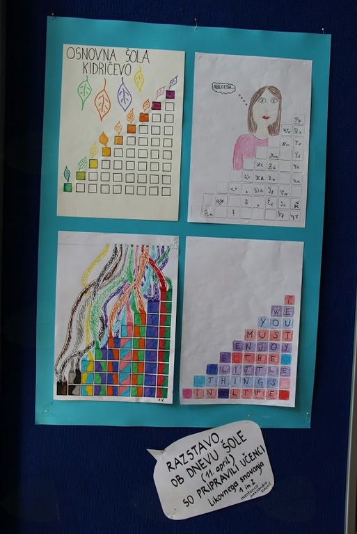 Ob dnevu šole so učenci likovnega snovanja pod mentorstvom Aleksandre Vidovič v avli pripravili razstavo.