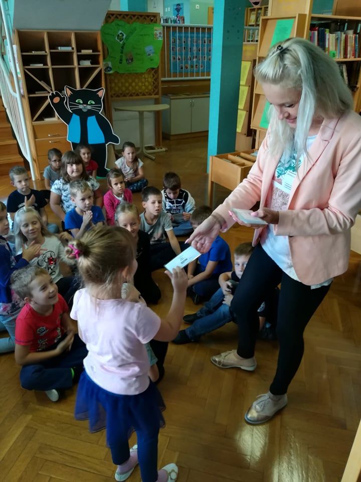 Ponovno smo vstopili v novo šolsko leto, ki tako otrokom kot staršem in učiteljem prinaša kopico dolžnosti in obveznosti, verjamem pa, da bomo v tej naglici našli tudi čas za branje kakovostnih knjig. 2. 9. je v matično in podružnično šolo zakorakalo 35 prvošolcev. Trudimo se otrokom čim bolj privzgojiti bralno kulturo, zato izvajamo številne dejavnosti, ki spodbujajo branje otrok. Veliko otrok je v preteklih letih že večkrat obiskalo šolsko knjižnico z vzgojiteljicami iz vrtca, tako da jim prostor ni tuj. Vsi so že komaj čakali dan, ko bodo lahko kot šolarji vstopili skozi vrata knjižnice, zato smo se odločili, da že kar drugi teden v septembru sprejmemo naše najmlajše v šolsko knjižnico. Ob tokratnem posebnem obisku knjižnice smo se še natančneje seznanili s knjižničnim redom ter s potekom izposoje in vračila gradiva. Na koncu je vsak prejel svojo člansko izkaznico, knjižno kazalo in razglednico s prikupno ilustracijo, vezano na branje. Vsi učenci so v dar prejeli še slikanico Škrat Kuzma dobi nagrado avtorice Svetlane Makarovič z ilustracijami Tomaža Lavriča.  Knjige tudi letos podarja Društvo Bralna značka Slovenije ob zvesti podpori sponzorjev in Javne agencije za knjigo Republike Slovenije. Knjigo prejmejo prvošolci po celi Sloveniji in slovenski otroci zunaj slovenskih meja.