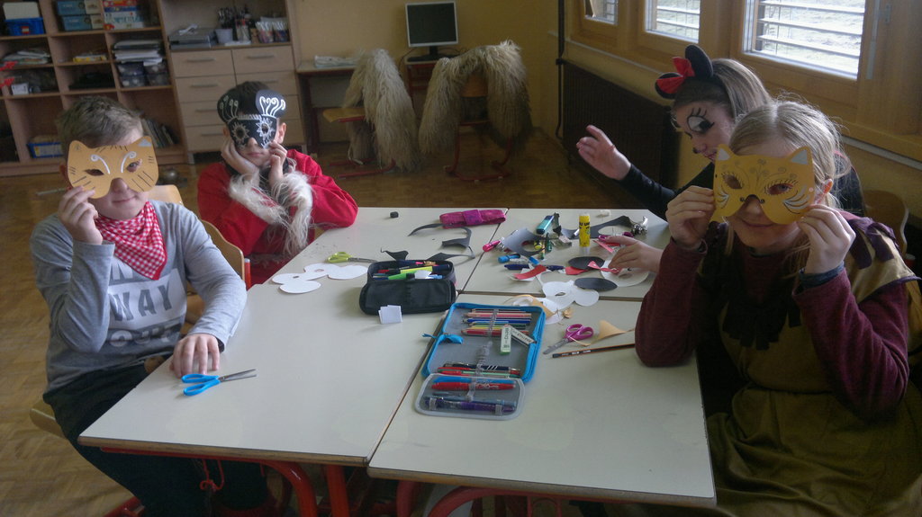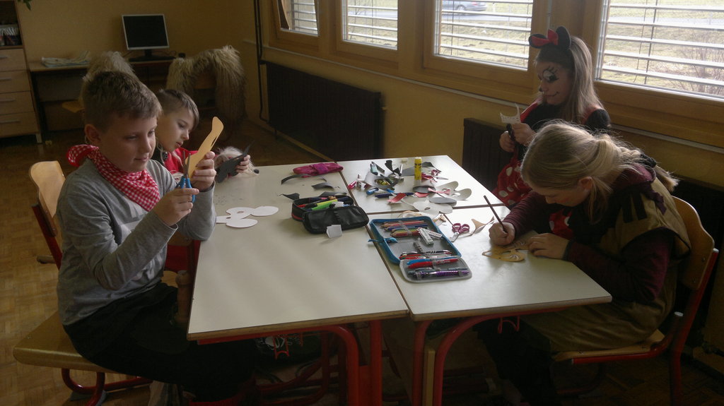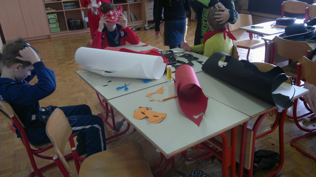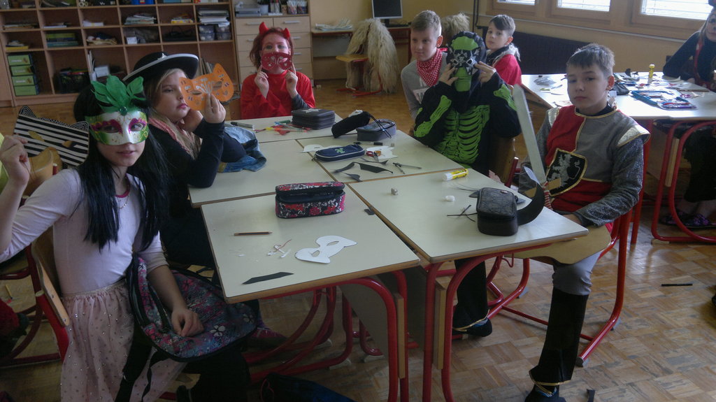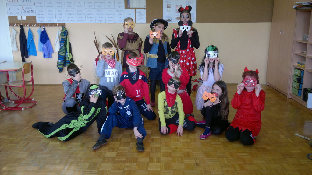 Zjutraj smo v šoli izdelovali maske. Odšli smo na malico, po njej pa smo maske dokončali. Ob 10.30 smo z avtobusom odšli v Kidričevo. Tam smo imeli kosilo. Po njem smo v avli pričakali kurente in Škote. S pustno povorko smo odšli v Park mladosti. Tam nas je zabaval Mario MaliBU. Mi pa smo se igrali, pili čaj in jedli krofe. Poslušali smo Škote, kurente in pokače. Veliko je bilo strašnih mask, zato smo koga tudi prestrašili. Ob 14.30 smo se z avtobusom odpeljali nazaj v Lovrenc. Odšli smo domov ali pa ostali v podaljšanem bivanju.