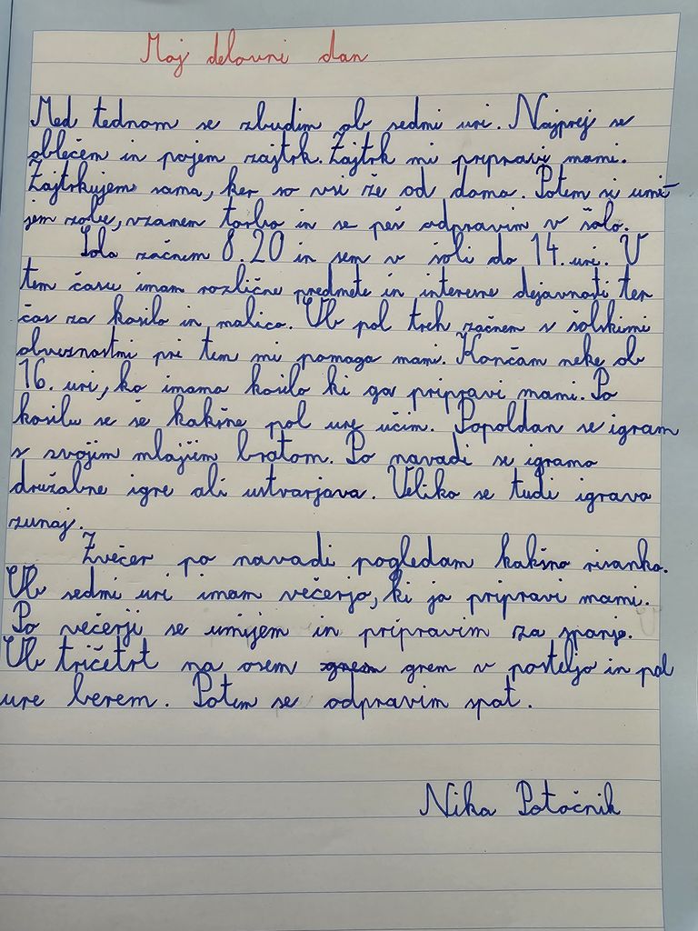 Teden pisanja z roko je bil več kot le projekt – bil je priložnost za povezovanje generacij, deljenje izkušenj in spodbujanje ustvarjalnosti. Zaradi pozitivnega odziva bomo tudi v prihodnje vključevali podobne aktivnosti, ki krepijo vezi med učenci in njihovimi družinami. Poleg krepitve ročne pisave je dogodek prinesel toplino, medgeneracijsko razumevanje in ustvarjalno izražanje.