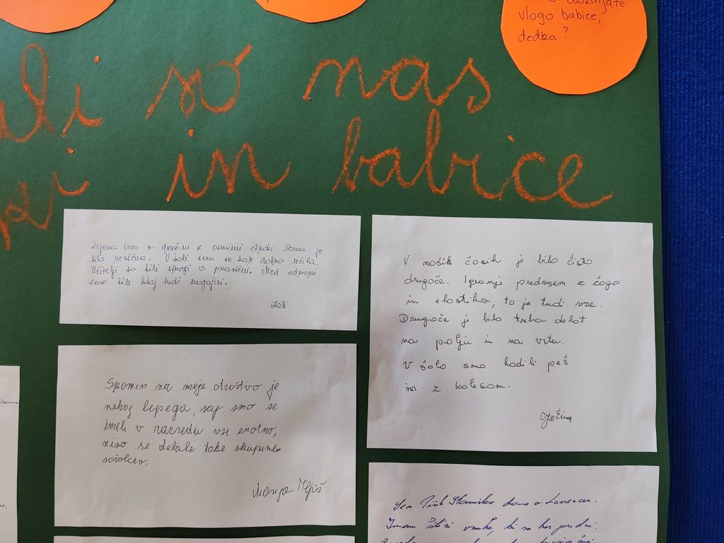 - Srečanje z dedki in babicami v 2. b razredu in v 6. a in 6. b razredu ter njihovi zapisi spominov