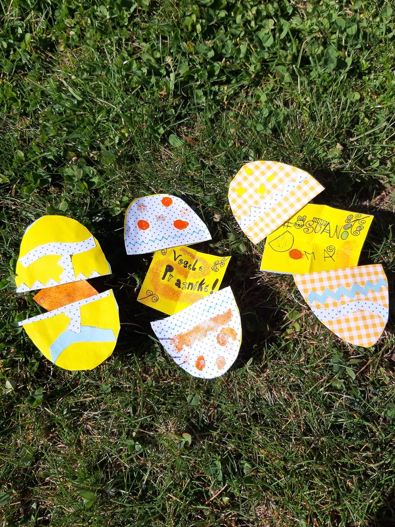 Čeprav je bila šola 9. aprila zaradi epidemije zaprta, smo učenci 3. razreda imeli tehniški dan. Učiteljica nam je preko spletne učilnice, ki mi je bila zelo všeč, povedala, da moramo izdelovati velikonočne izdelke iz papirja ali slanega testa. Pri tem smo morali uporabiti svojo domišljijo. Izdelal sem velikonočna jajčka s sporočili.