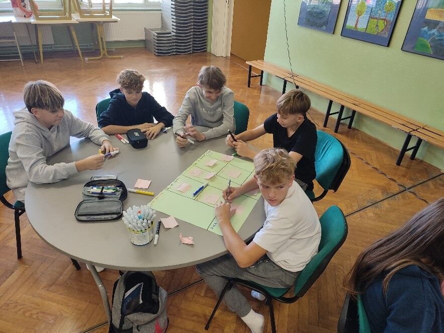 V 8. razredu smo se osredotočili na praktične in terenske dejavnosti. Učenci so obiskali EKO kmetijo Pri omi Neži, spoznali delovanje majhnega podjetja, proizvodnjo in trženje izdelkov ter pomen trajnostnega pridelovanja. Razvijali so prve poslovne modele, oblikovali vizijo podjetja, ustvarjali blagovne znamke in slogane ter pripravljali predstavitve s pomočjo digitalnih orodij. Zaključna predstavitev jim je omogočila dragocene izkušnje pri javnem nastopanju in sodelovanju.