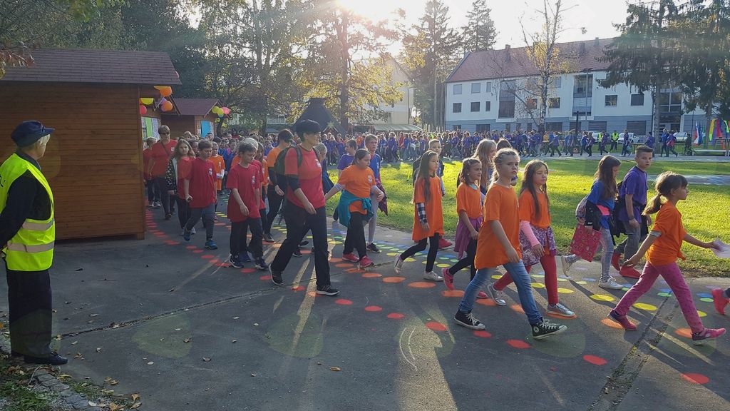 Najprej sem se zbudil, se oblekel in si umil zobe. 12. 10. 2017 ob 10.30 sva se s sestro Mio odpravila do šole. Tam smo imeli kosilo. Ko smo pojedli, smo se oblekli v majčke. Razdelili smo se na štiri delavnice. Najprej sem bil pri likovni, potem pa še pri glasbeni delavnici. Čakali smo na avtobus, ampak ker ga ni bilo kar dolgo, smo se lahko odšli igrat na igrala. Ko je prišel avtobus in nas pobral, smo se pripasali in odpeljali v Kidričevo. Na prvi postaji, pri Talumu, so izstopile modre majčke. Odšli smo do druge postaje, tam so izstopile vijolične majčke. Ko pa smo prišli do tretje, smo izstopili jaz, Mia, Anida in Blaž. Imeli smo oranžne majčke. Odšli smo v Park mladosti, kjer so nekateri učenci pripravljali kuliso za predstavitev Unicefa. Mi pa smo narisali kolesa za 140 kolesarjev. Ko smo dokončali, smo na liste šli risat svoja imena, ki smo jih odnesli učiteljici za likovno umetnost. Ko je bilo te delavnice konec, smo se z rdečo ekipo zamenjali in odšli na glasbeno delavnico. Tam smo peli pesem Vem, da danes bo srečen dan, to sem začutil že zjutraj. Ko smo se naučili to pesem, smo odšli nazaj v Park mladosti. Tam smo nastopili s to pesmijo, ki smo se jo naučili. Ta dan mi je bil zelo všeč.
