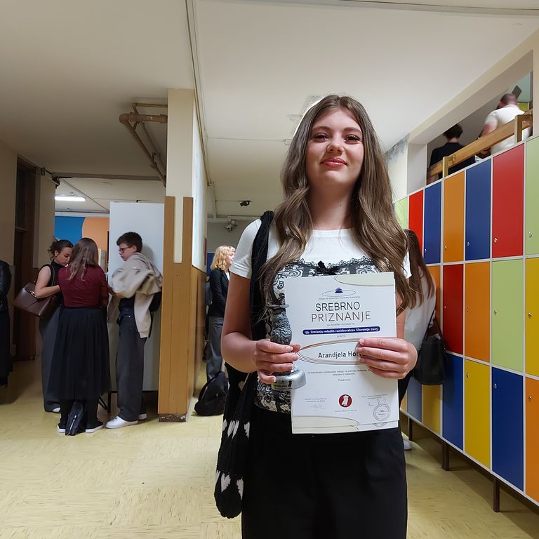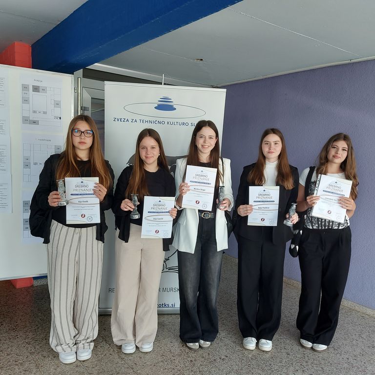 Z nami sta šli učiteljici Jasna Vinkler in Sonja Lenarčič, ki sta nas podpirali skozi ves dan. Na tekmovanju smo učenke Alja Vindiš, 8. a, Zoja Ivančič, 8. a, Neža Panikvar, 9. a, Martina Strgar, 9. b, in Arandjela Horvat, 9. b, sodelovale s tremi raziskovalnimi nalogami. Teme so bile naslednje: Poljub smrti, Ko je laž postala nova resnica in Kako vpliva glasba na naše razpoloženje v šolskem okolju. Vse tri naloge so bile nagrajene s srebrnim priznanjem, kar nas je zelo razveselilo.