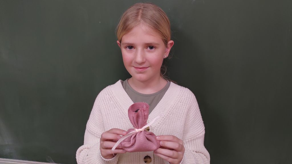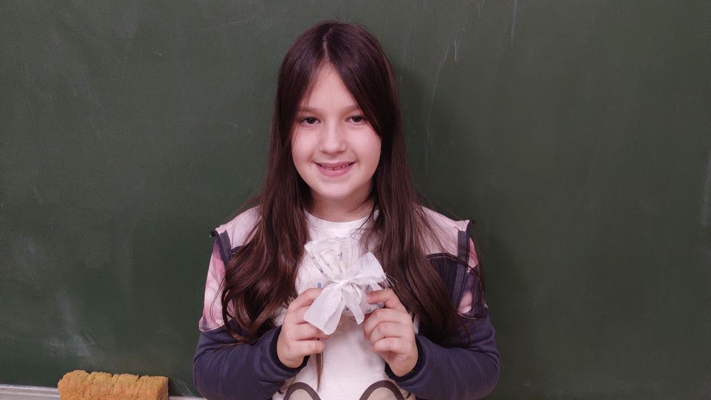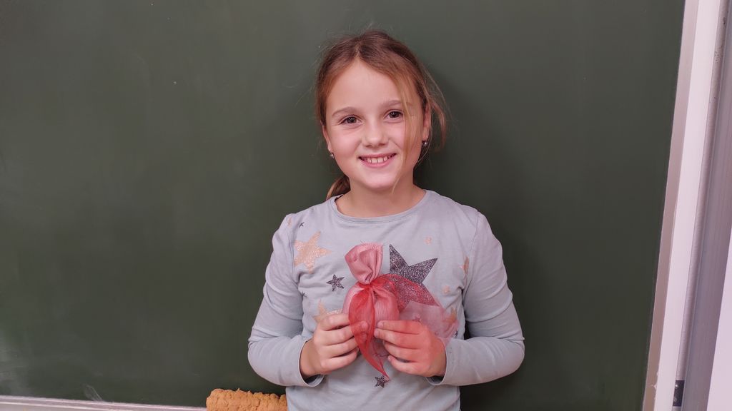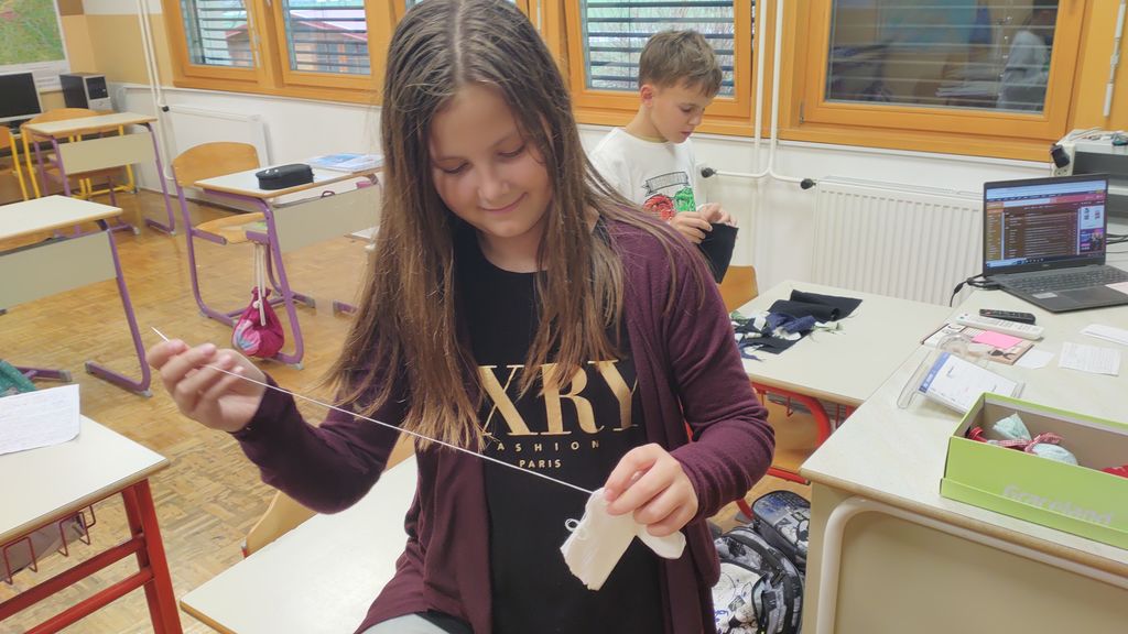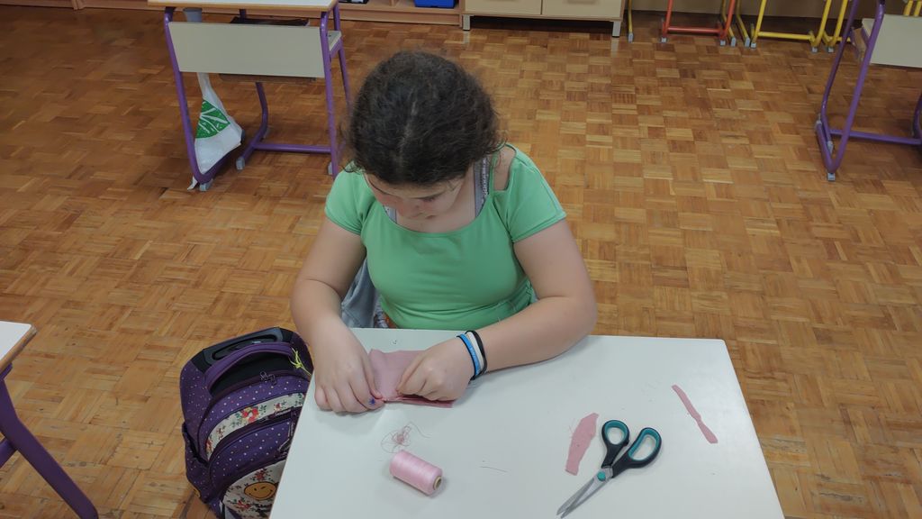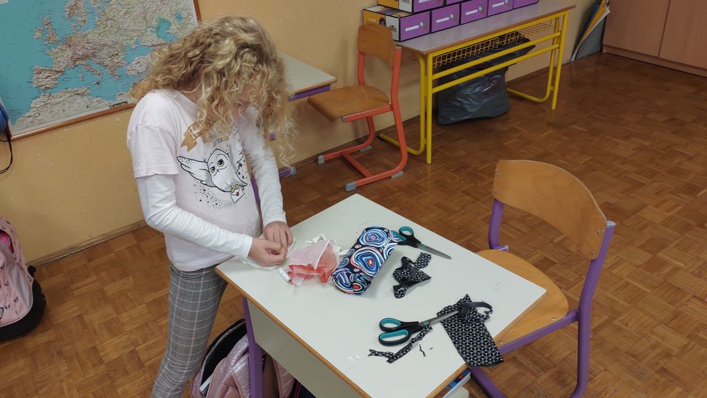 November smo namenili izdelavi izdelkov za šolski bazar. Letos smo se lotili šivanja dišečih vrečk. Najprej smo si pripravili vsak svoj kos blaga, nit in šivanko. Blago smo razrezali na primerno dolžino, napeljali nit in sešili vrečke. Pokazati smo morali kar nekaj spretnosti. Vrečke smo napolnili s posušeno sivko ali rožmarinom. Za konec smo jim dodali še pentlje. Razred je cel november lepo dišal. Prav tako smo risali z barvnimi tuši in tako spoznali novo likovno tehniko.