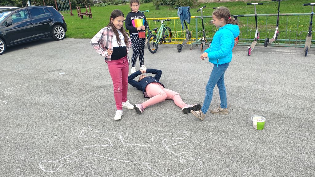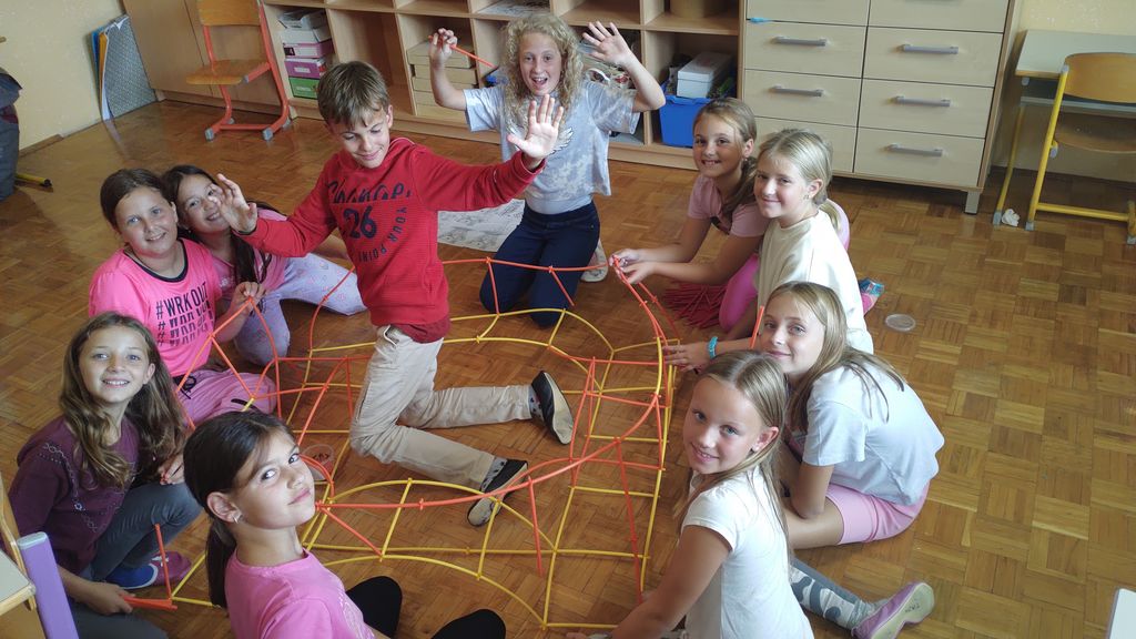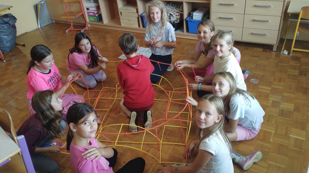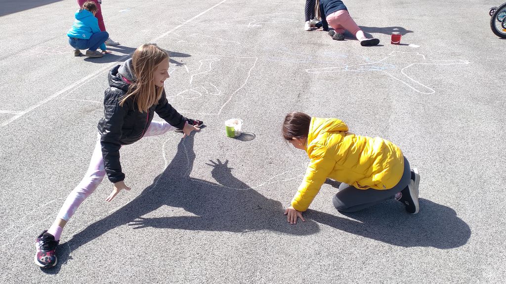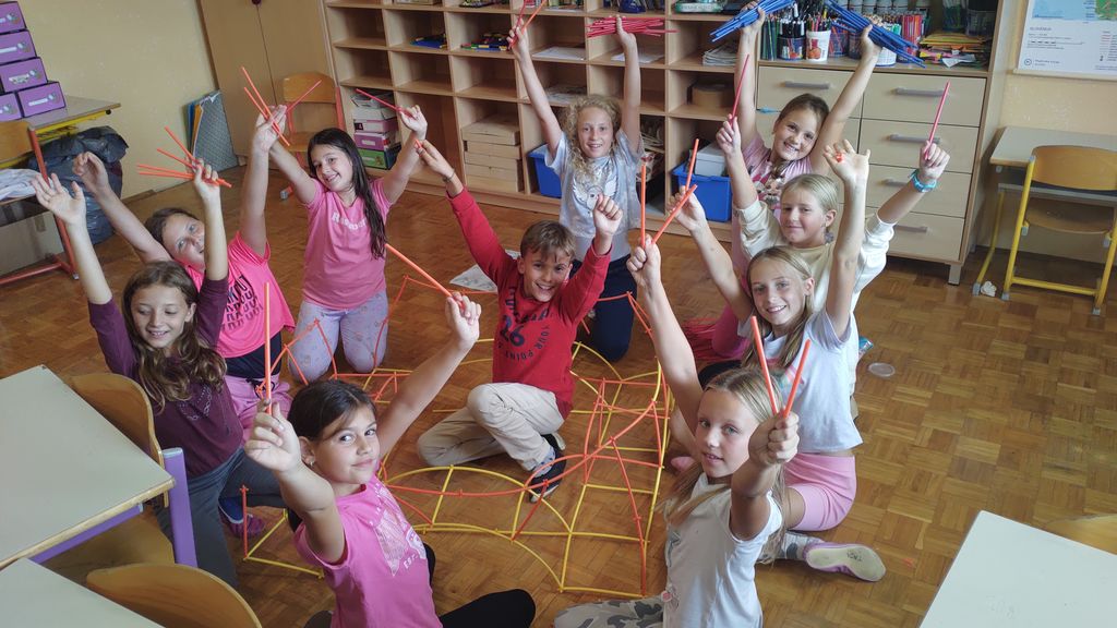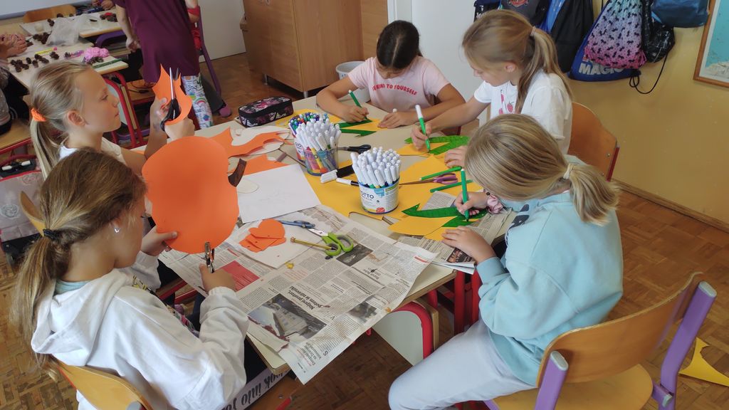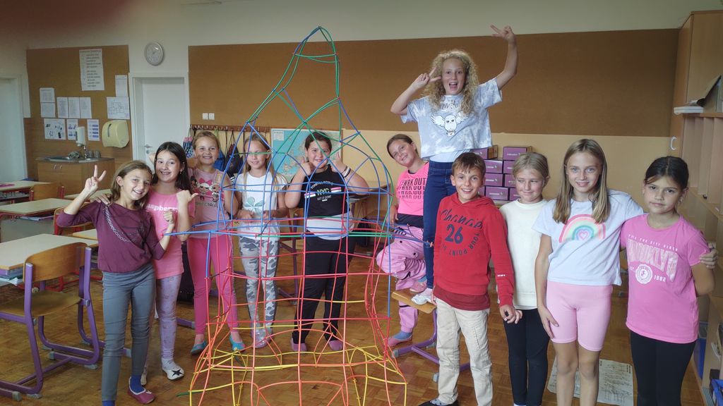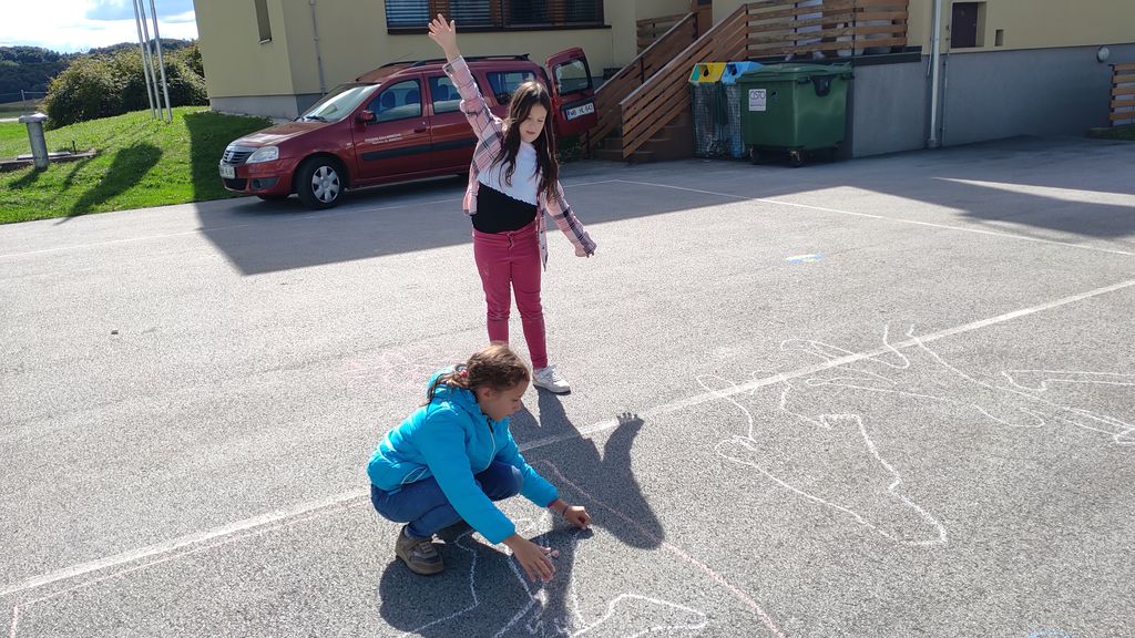 Ponovno se je začela šola in učenci smo zapolnili tihe in prazne razrede. Tudi pri ustvarjalnicah se je veliko dogajalo. Najprej smo ustvarjali na temo počitniška doživetja in jih slikali z vodenimi barvami. Nato smo v roke vzeli krede in risali sence. Postavili smo se v najrazličnejše položaje, sošolci pa so obrisali naše sence. Postali smo tudi arhitekti. S pomočjo plastičnih slamic smo zgradili Eifflov stolp.